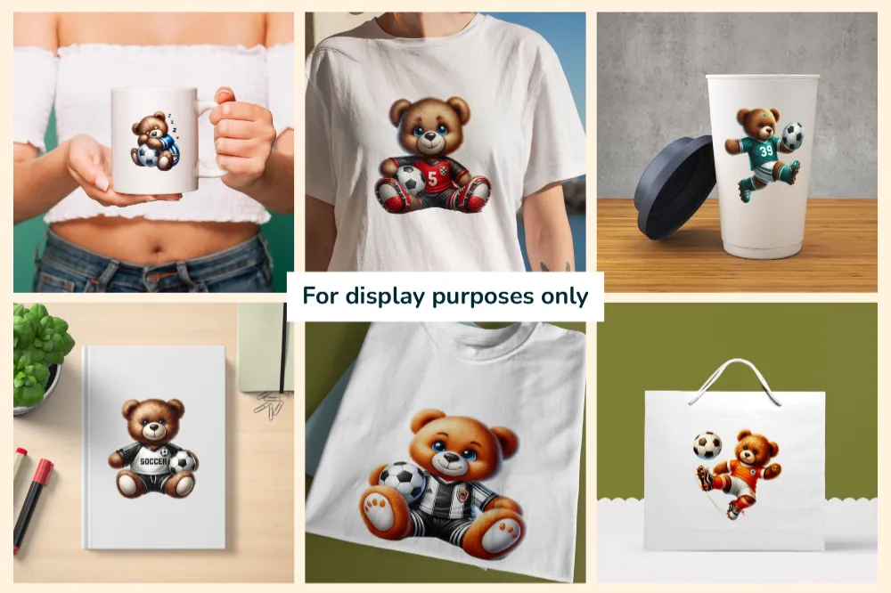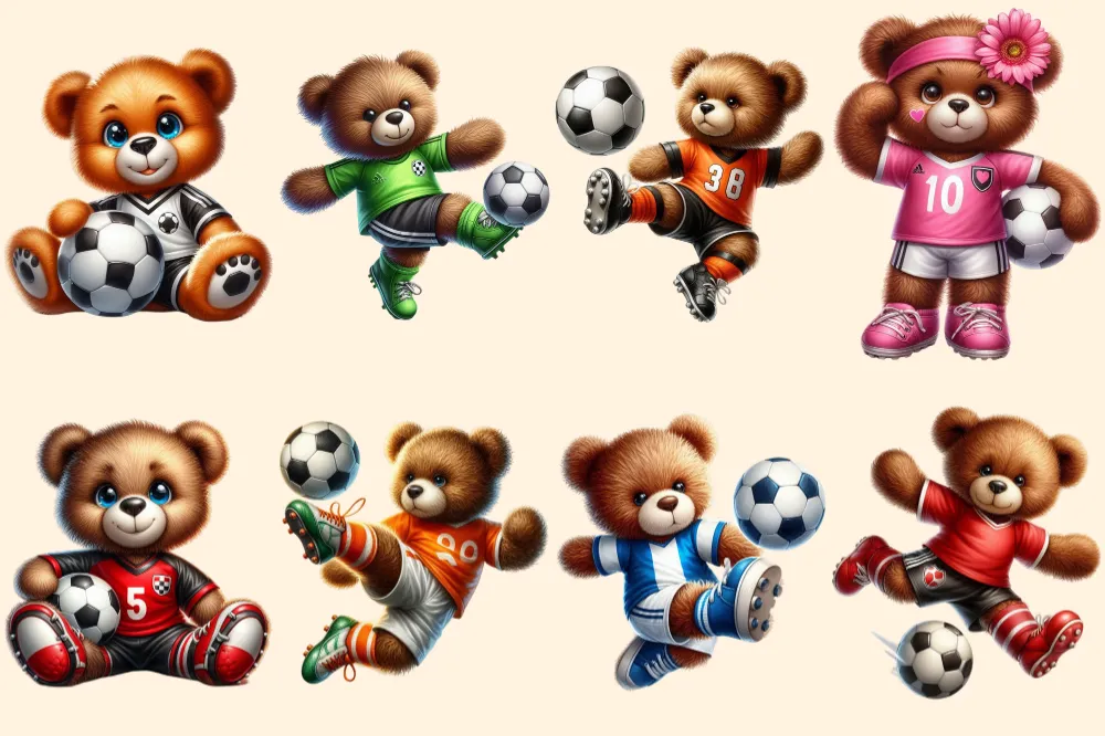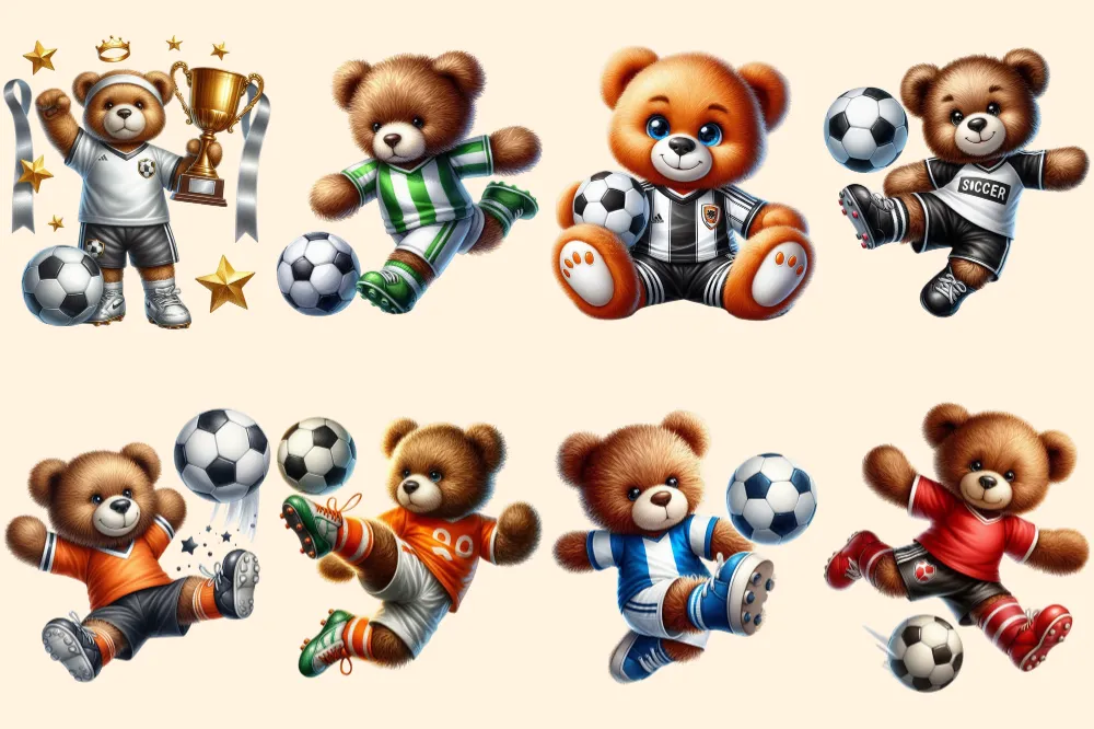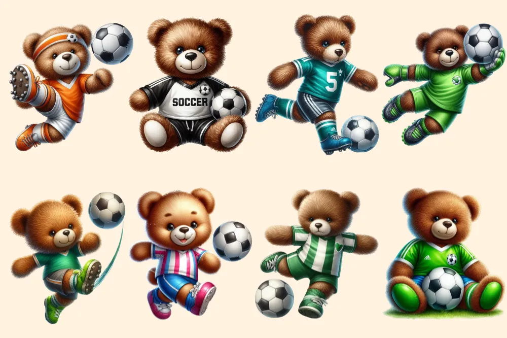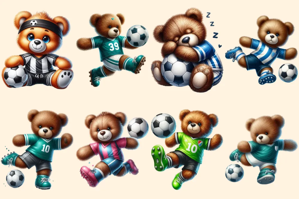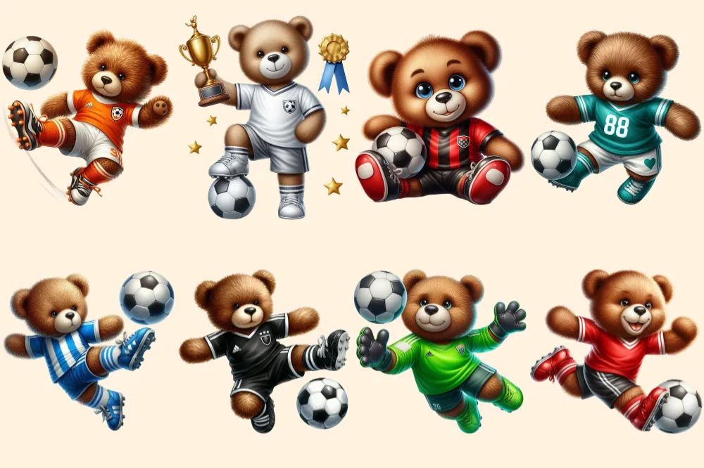 Soccer Teddies (P-2) PNG Clipart Collection – 37 PNG, Soccer teddy illustrations, Bear sports printables, Commercial use, Digital download