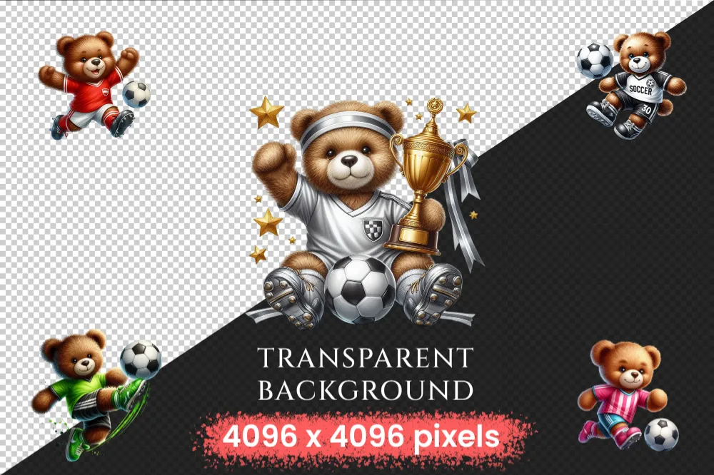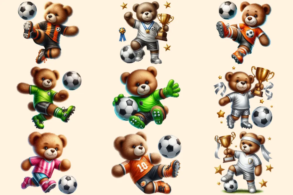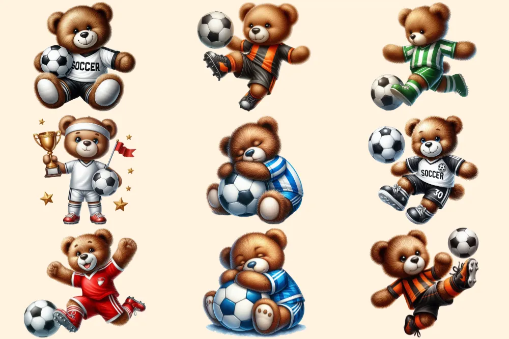 Soccer Teddies PNG Clipart Collection – 42 PNG, Soccer teddy illustrations, Bear sports printables, Commercial use, Digital download