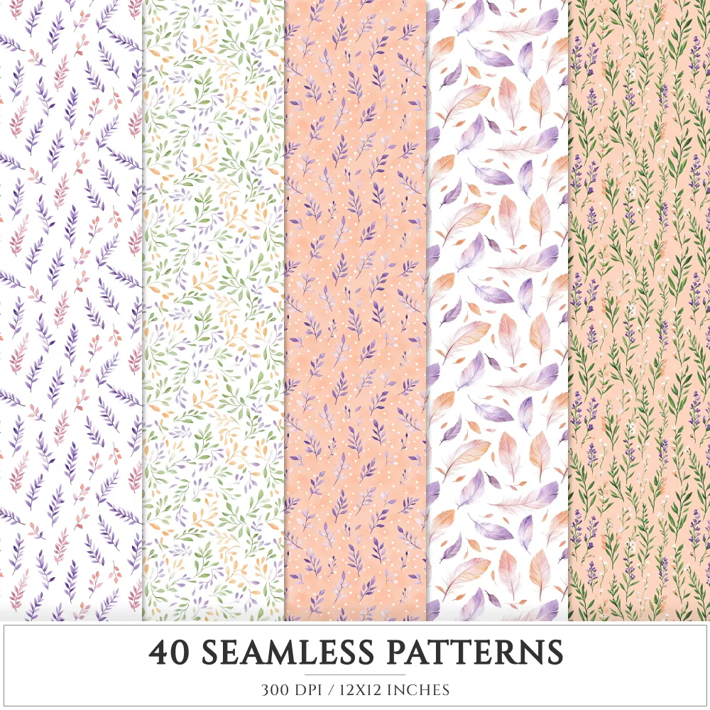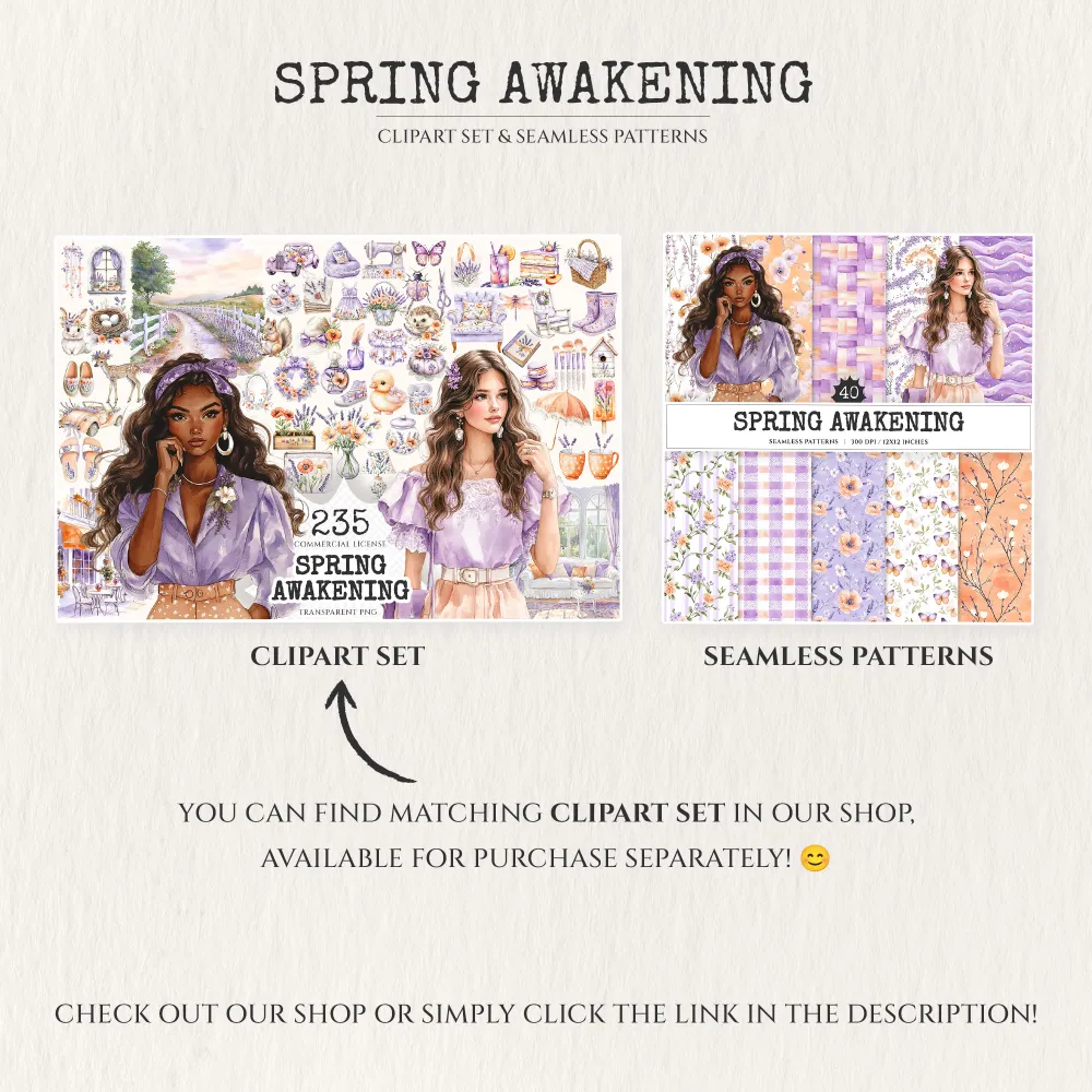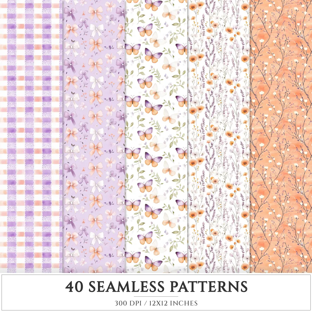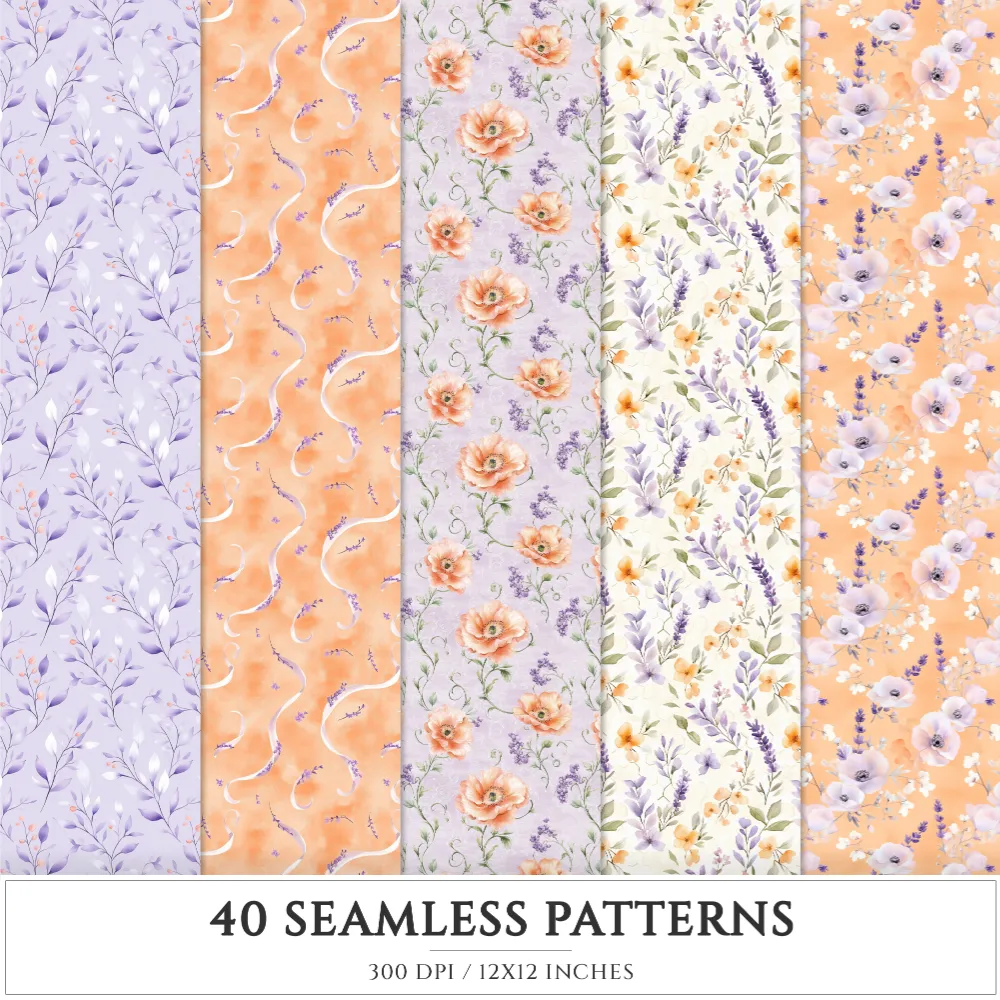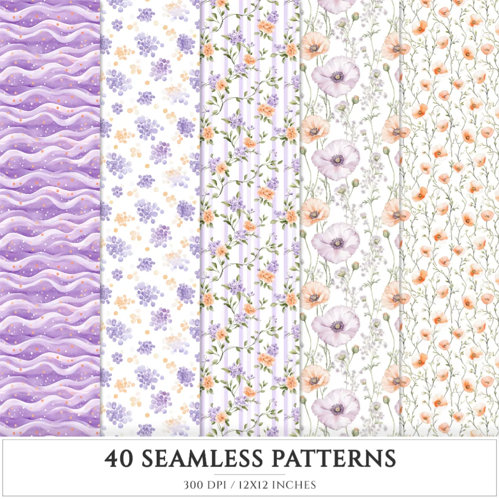 Spring Awakening Seamless Patterns, Whimsical spring JPEG, Floral pattern, Lavender, Spring meadow repeating pattern,Digital scrapbook paper