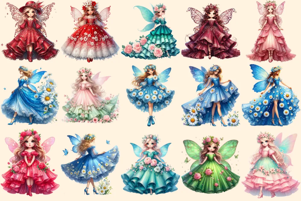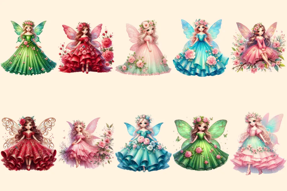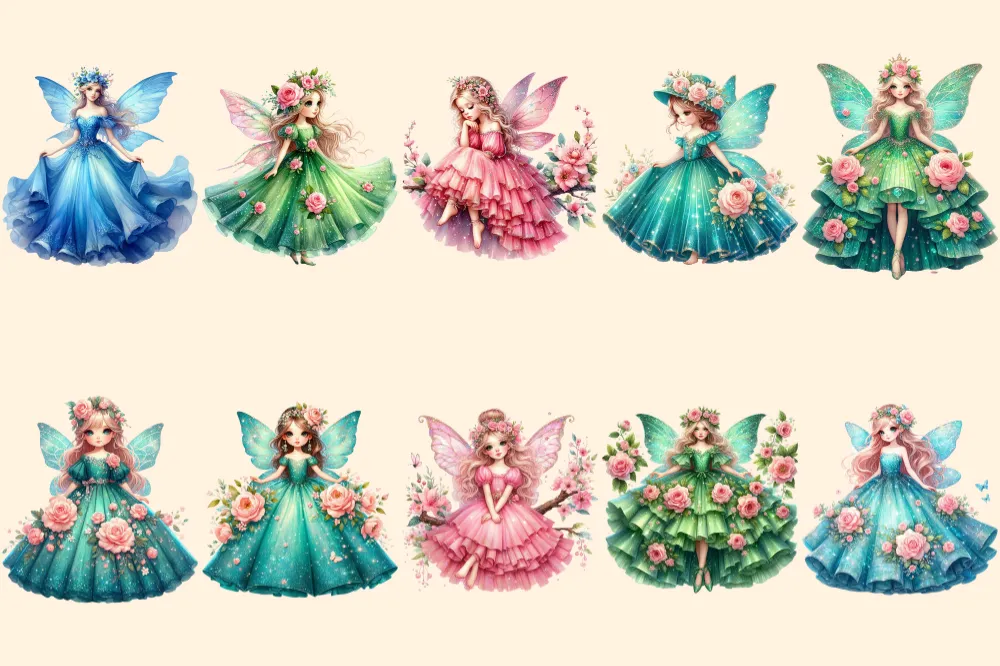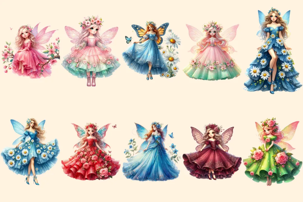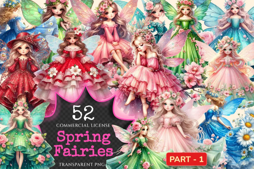 Spring Fairies PNG Clipart Collection – 52 PNG, Whimsical fairy illustrations, Enchanting printables, Commercial use, Digital download