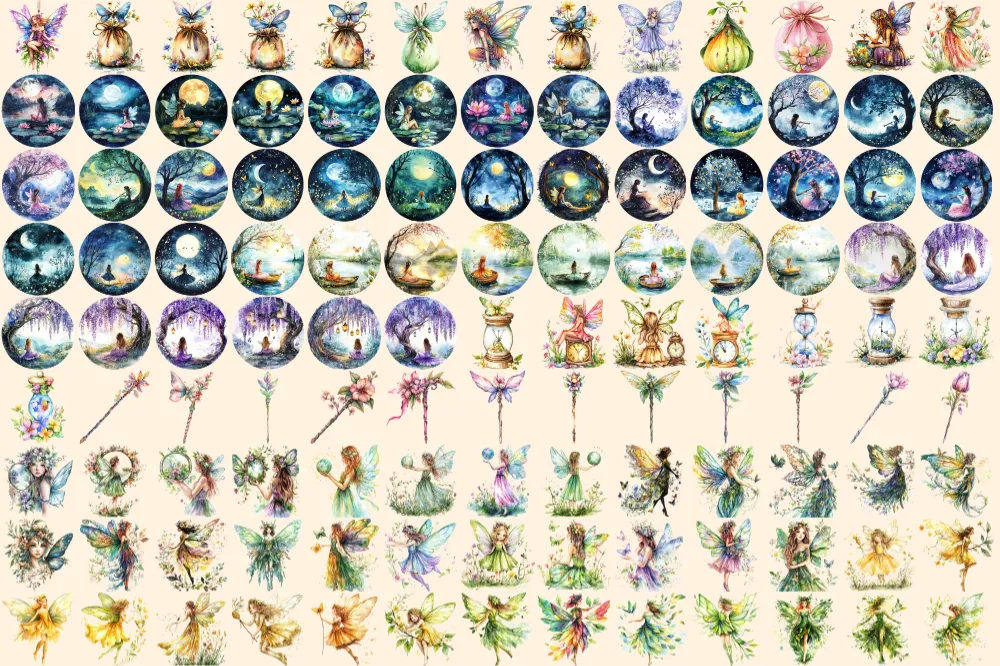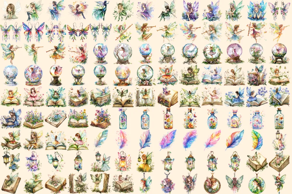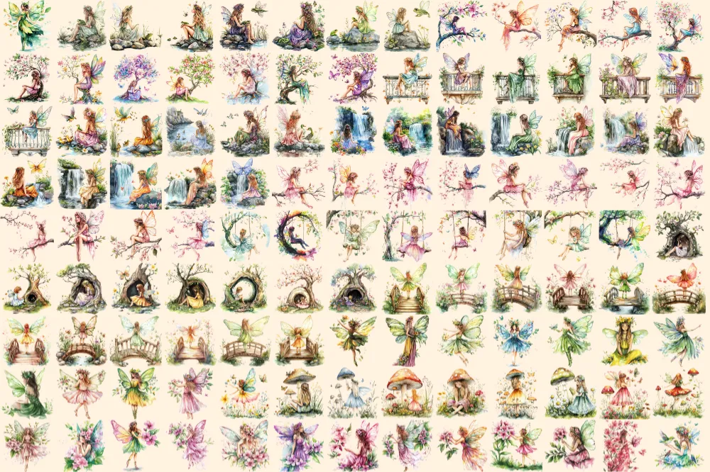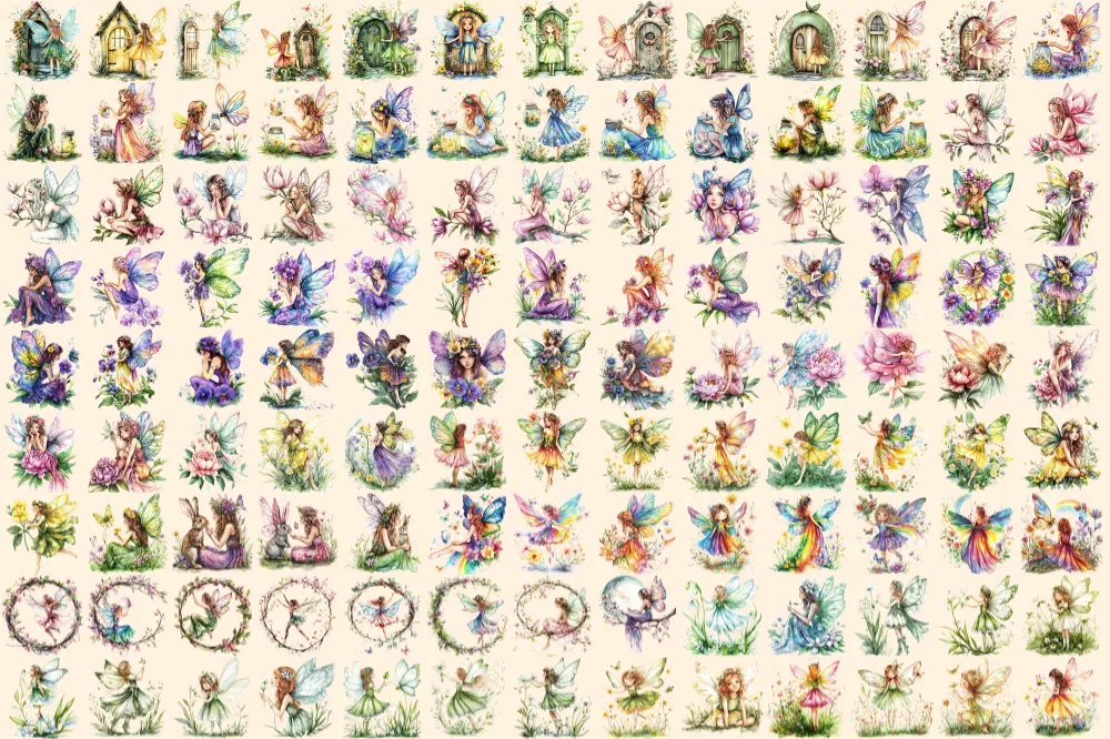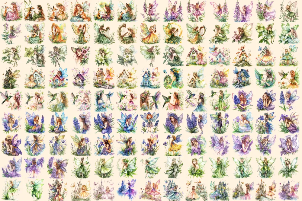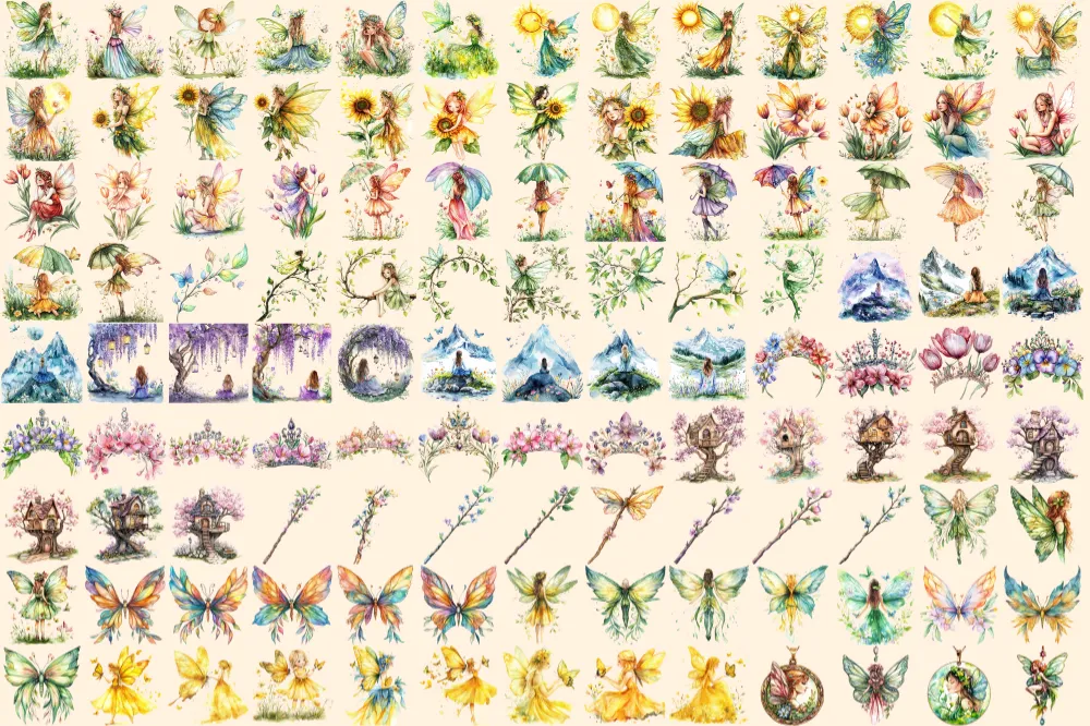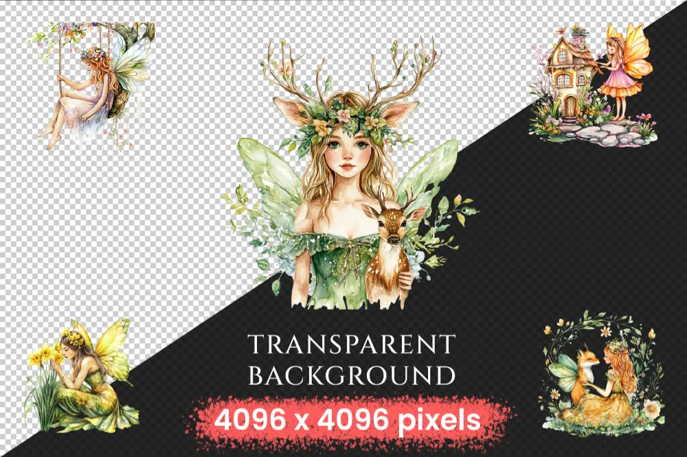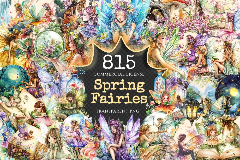 Spring Fairies Watercolor Clipart Bundle – 810+ transparent PNG, Whimsical fairy graphics, Magical fairy, Commercial use, Digital download