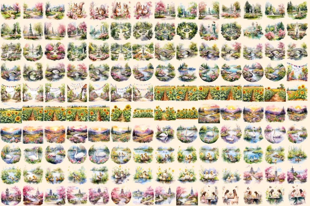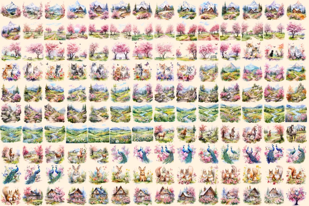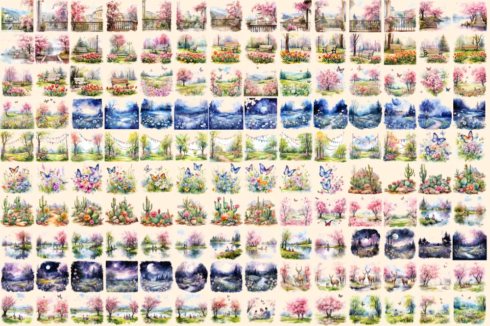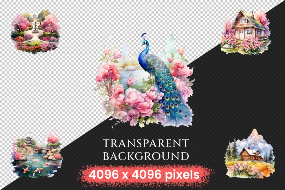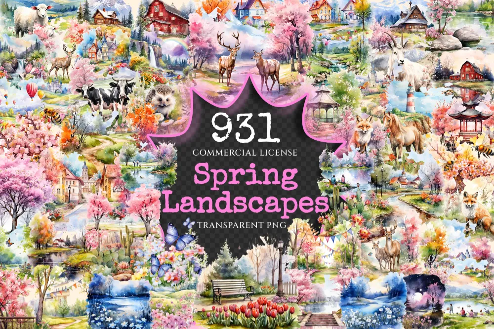 Spring Landscapes Watercolor Clipart Bundle – 927+ transparent PNG, Beautiful landscape images, Nature png, Commercial use, Digital download