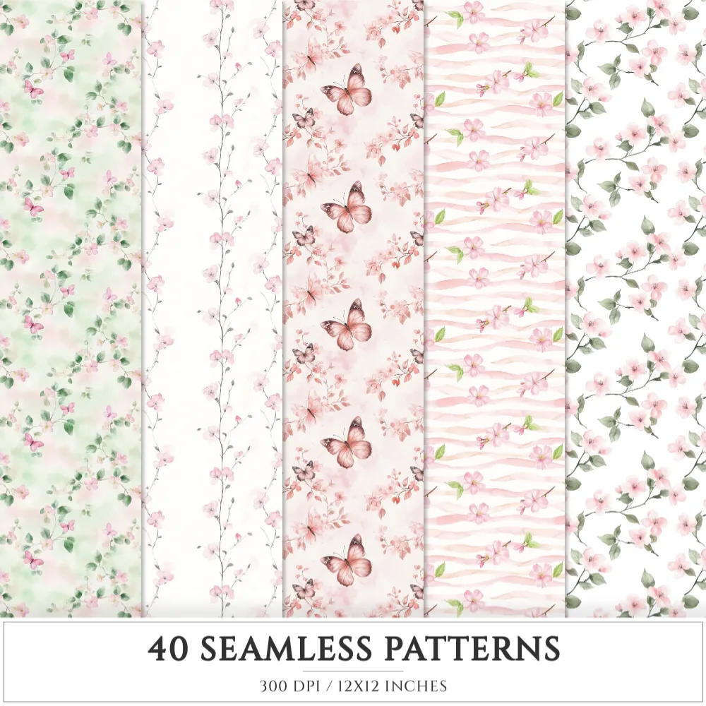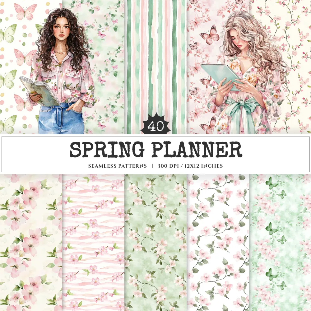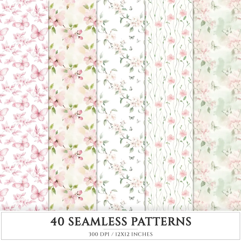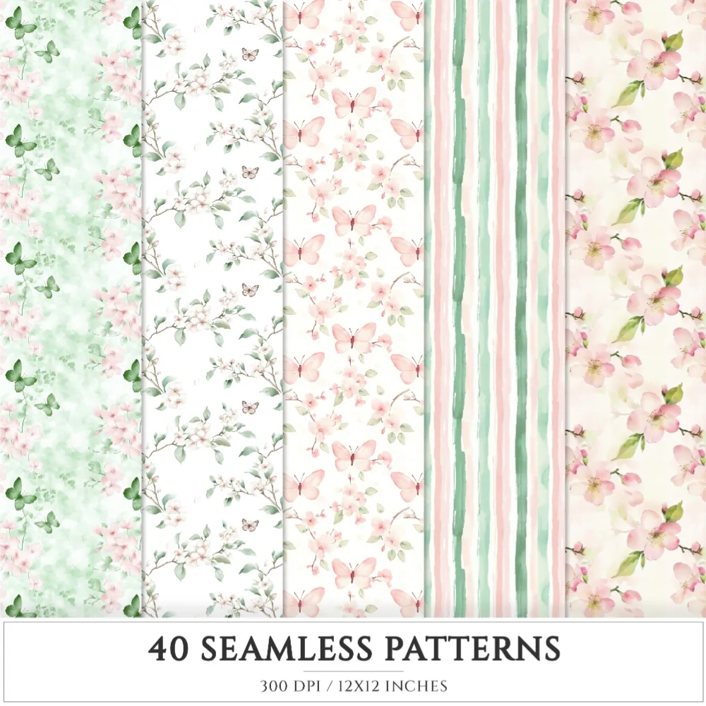 Spring Planner Seamless Patterns, Springtime Floral JPEG, Floral seamless pattern, Spring blossom repeating pattern, Digital scrapbook paper