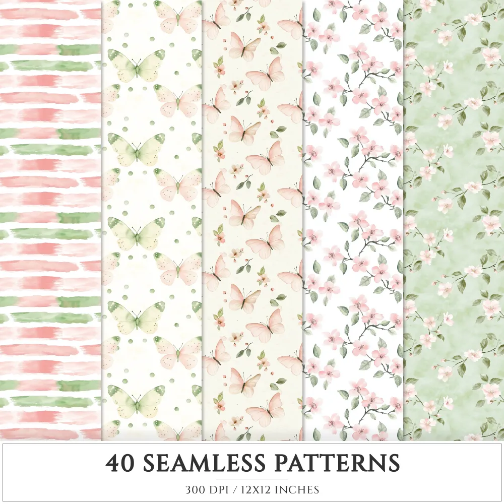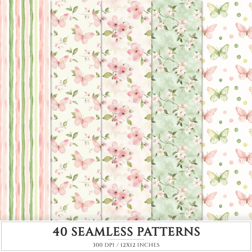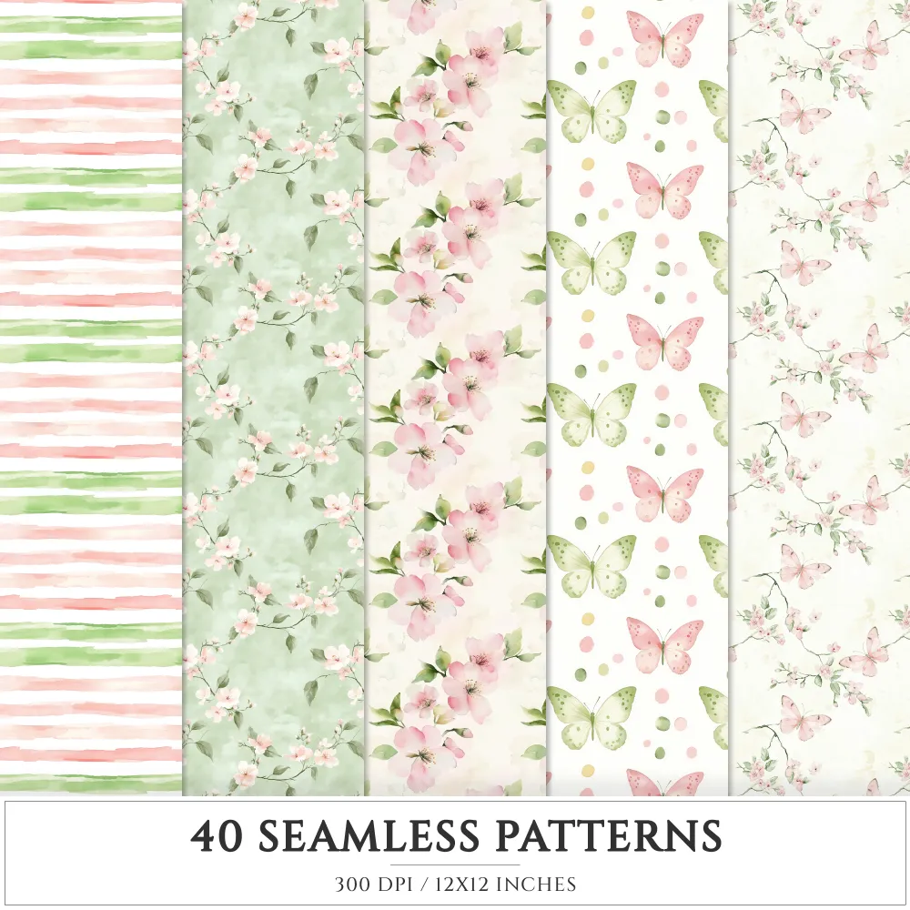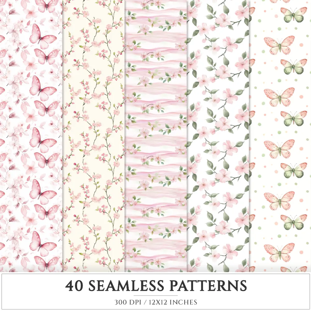 Spring Planner Seamless Patterns, Springtime Floral JPEG, Floral seamless pattern, Spring blossom repeating pattern, Digital scrapbook paper