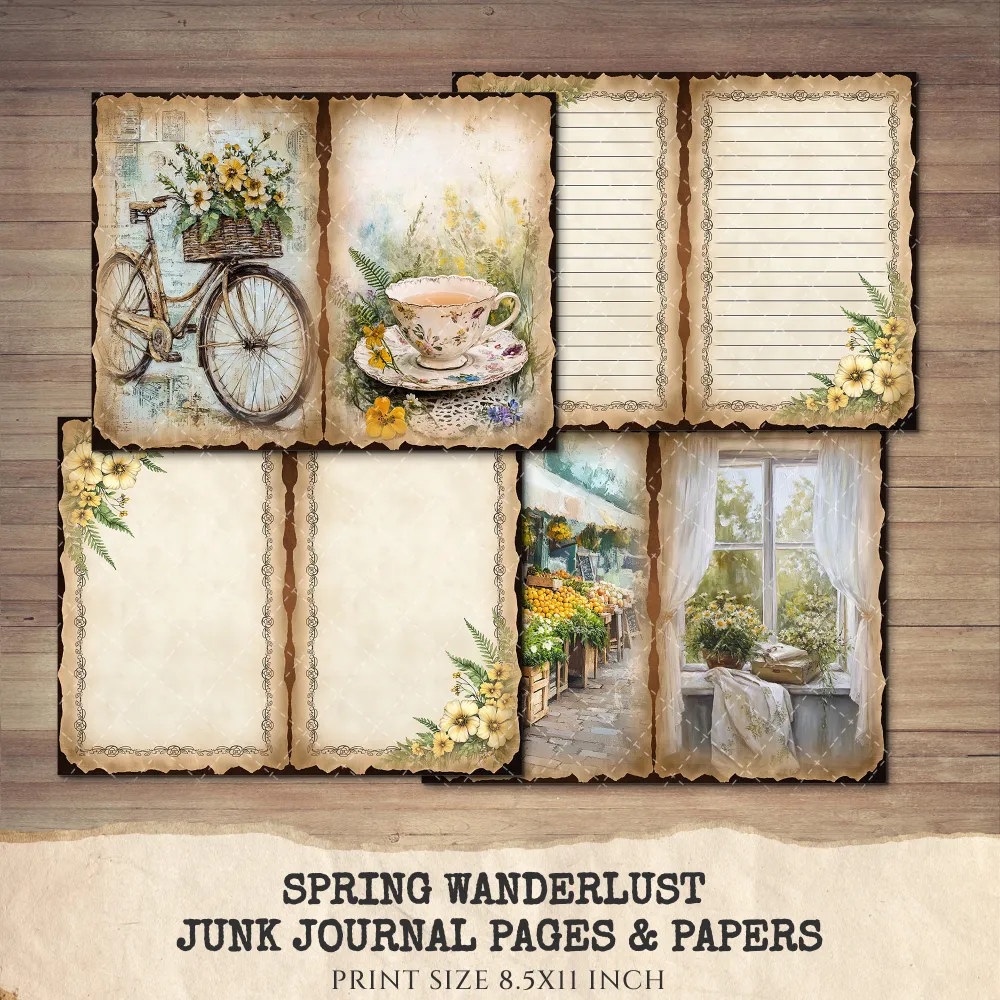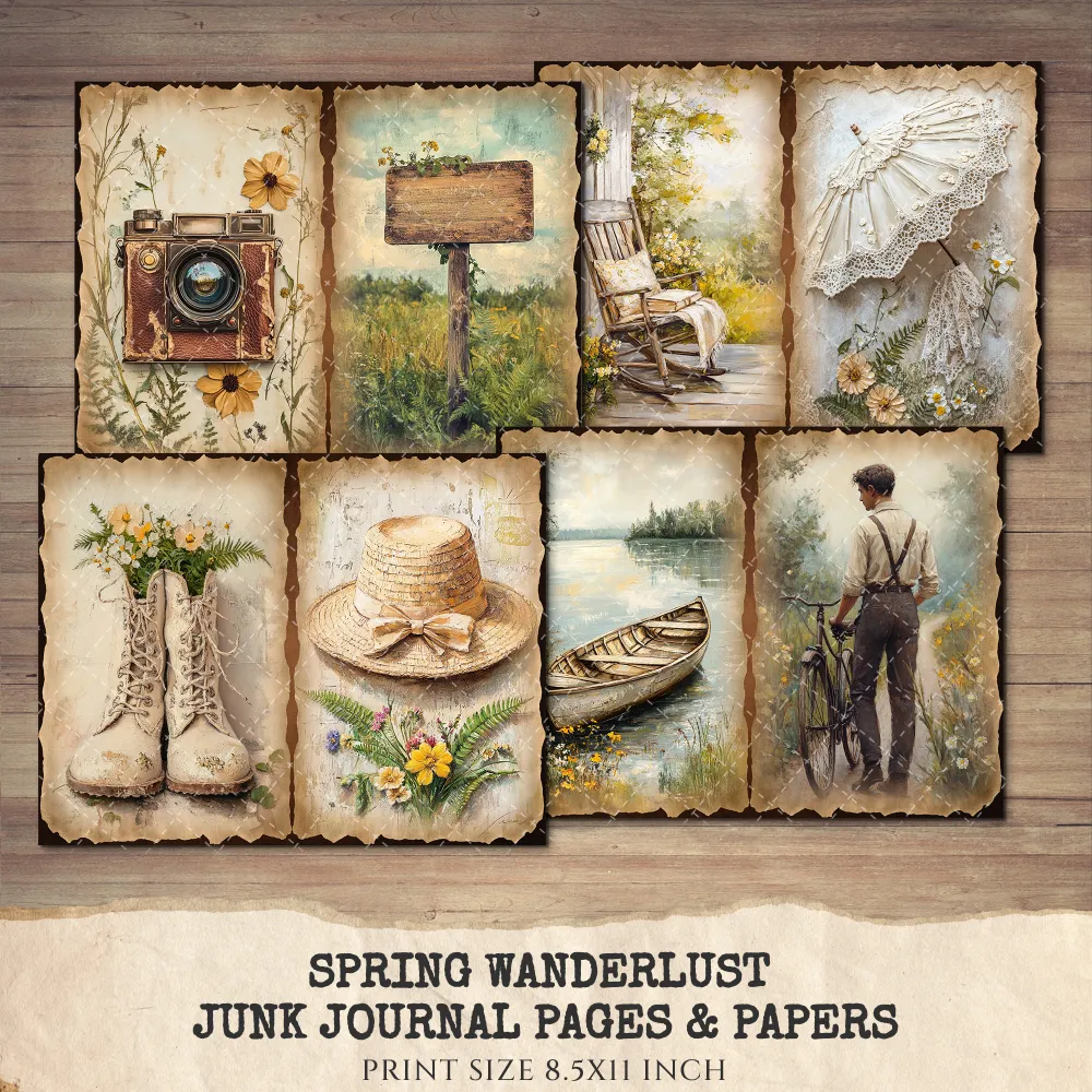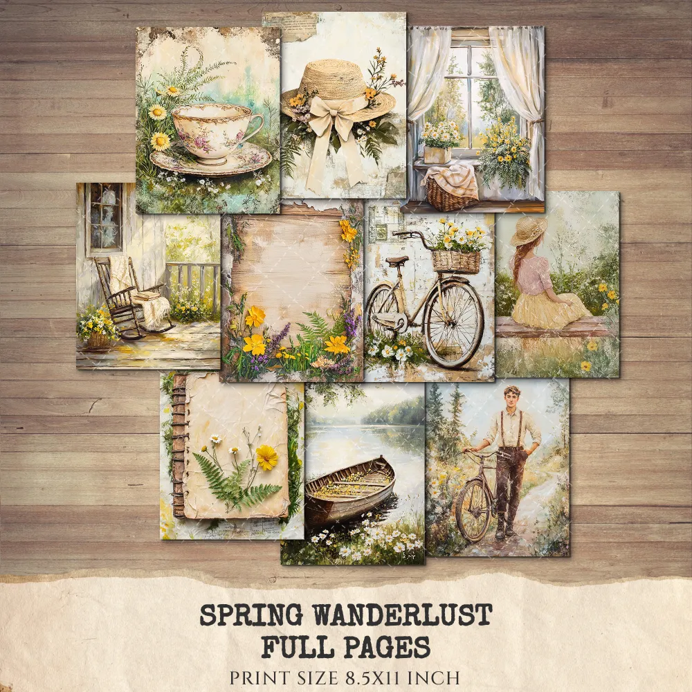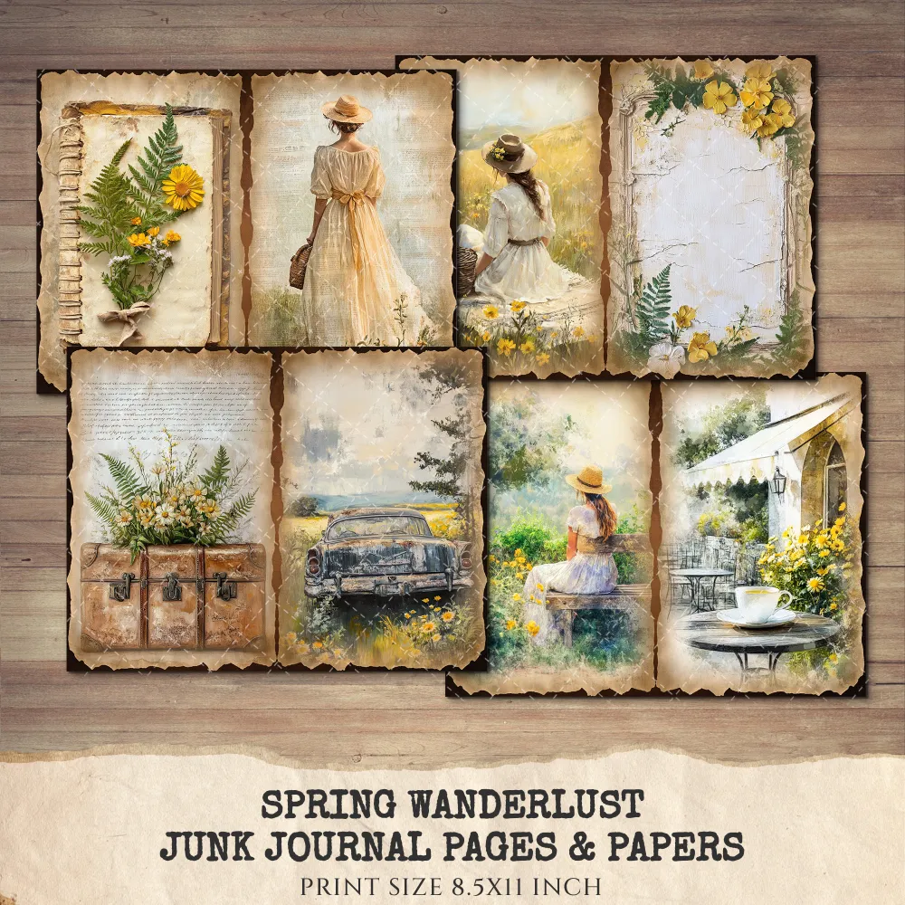 Spring Wanderlust Junk Journal Pages & Papers – Countryside Travel, Springtime Printable, Wildflowers Scrapbook, Farmhouse, Digital Download