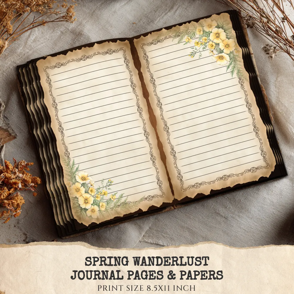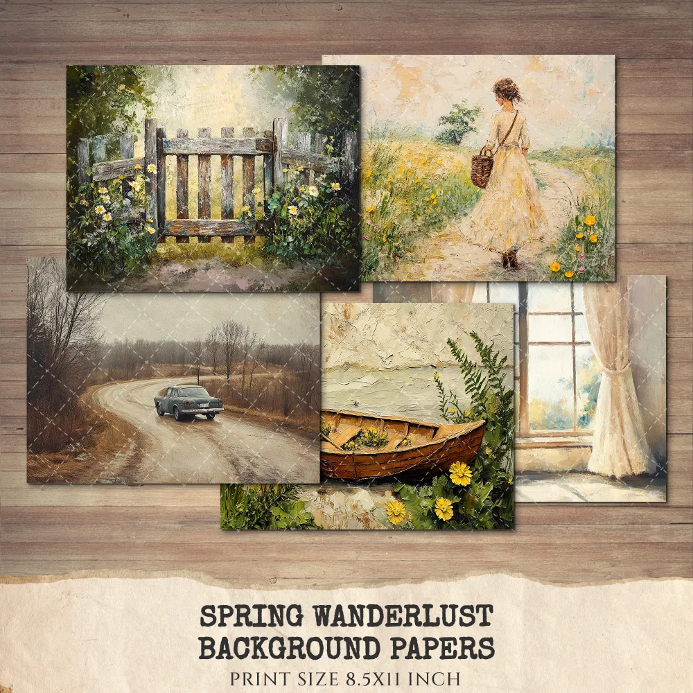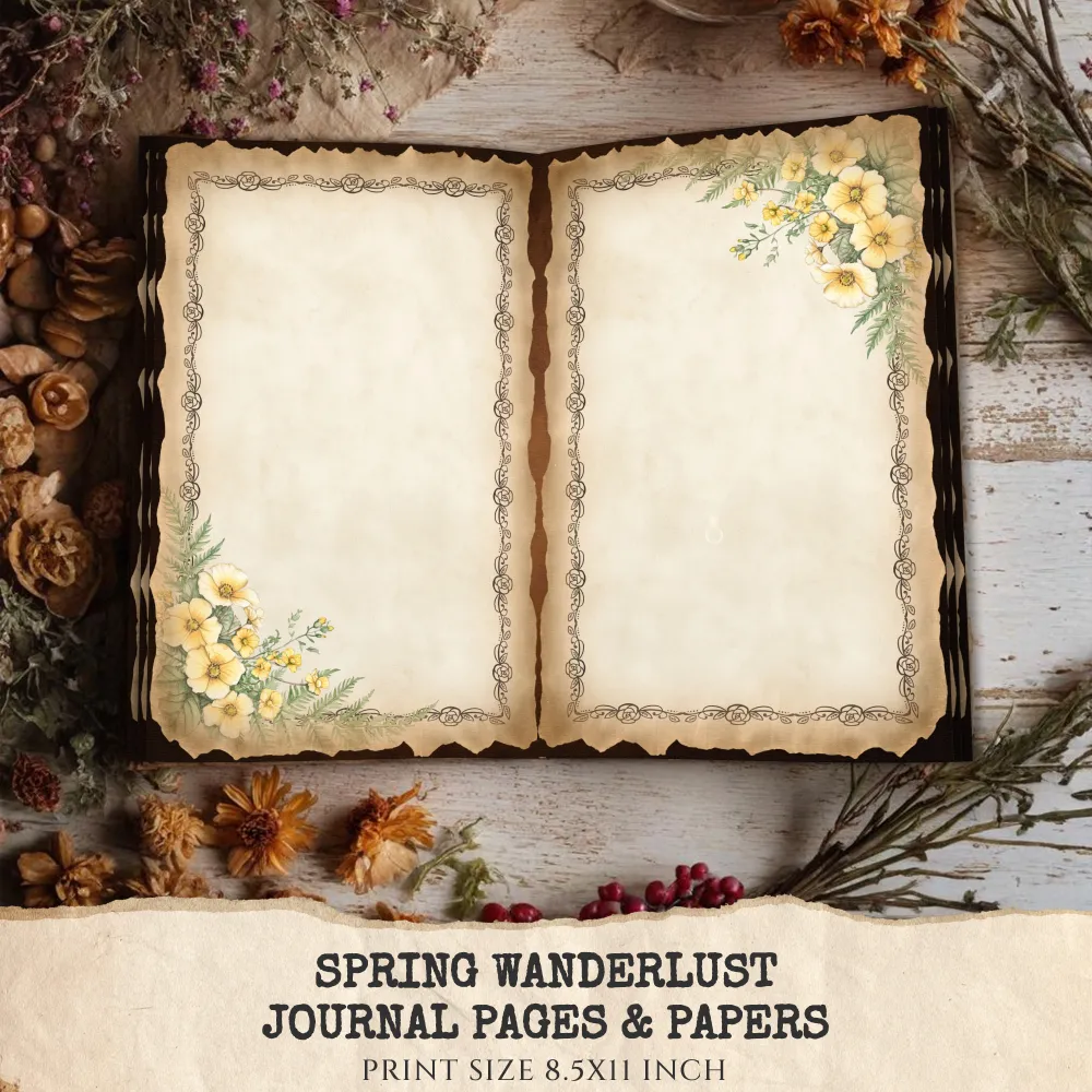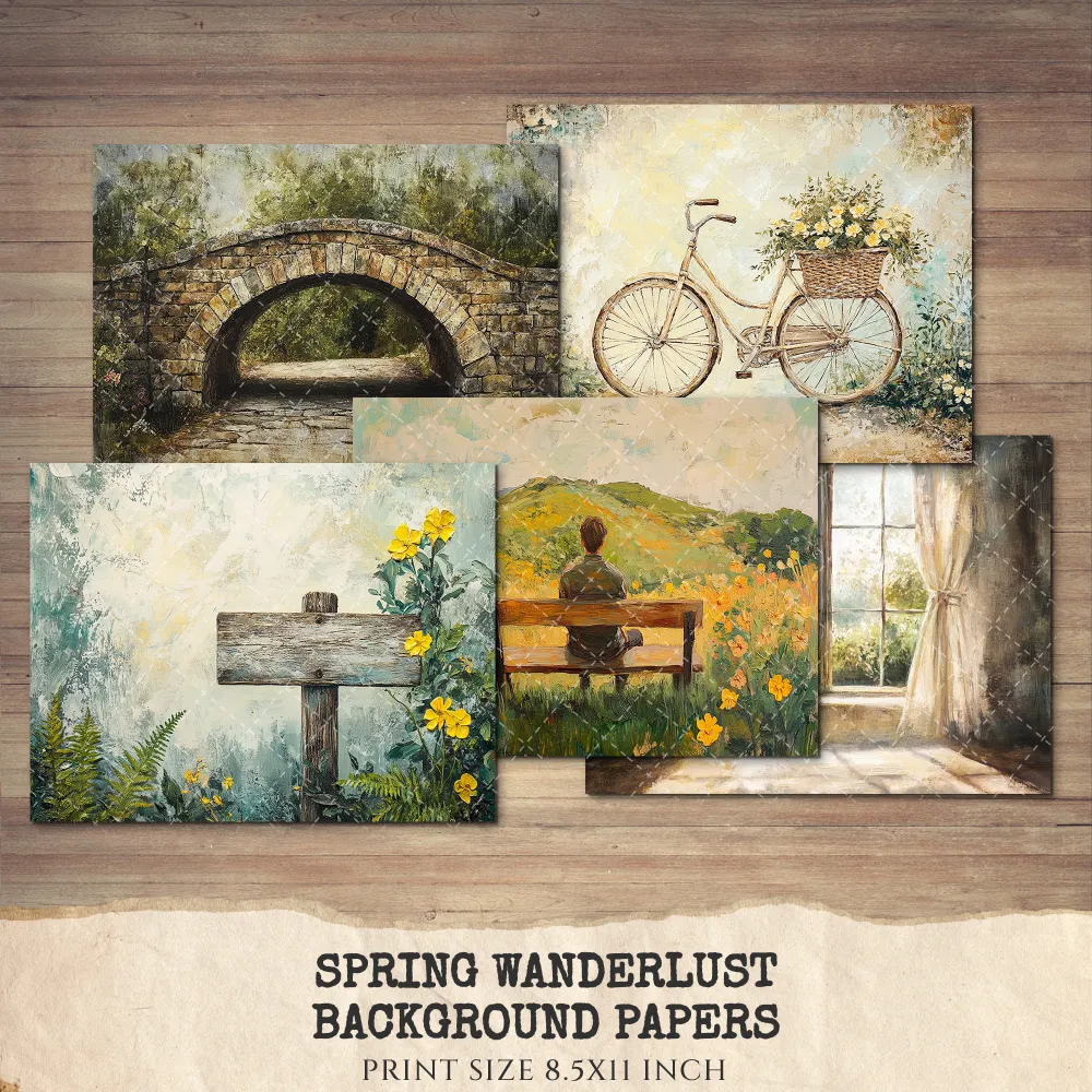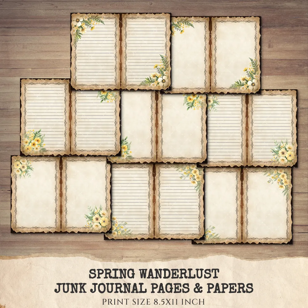 Spring Wanderlust Junk Journal Pages & Papers – Countryside Travel, Springtime Printable, Wildflowers Scrapbook, Farmhouse, Digital Download