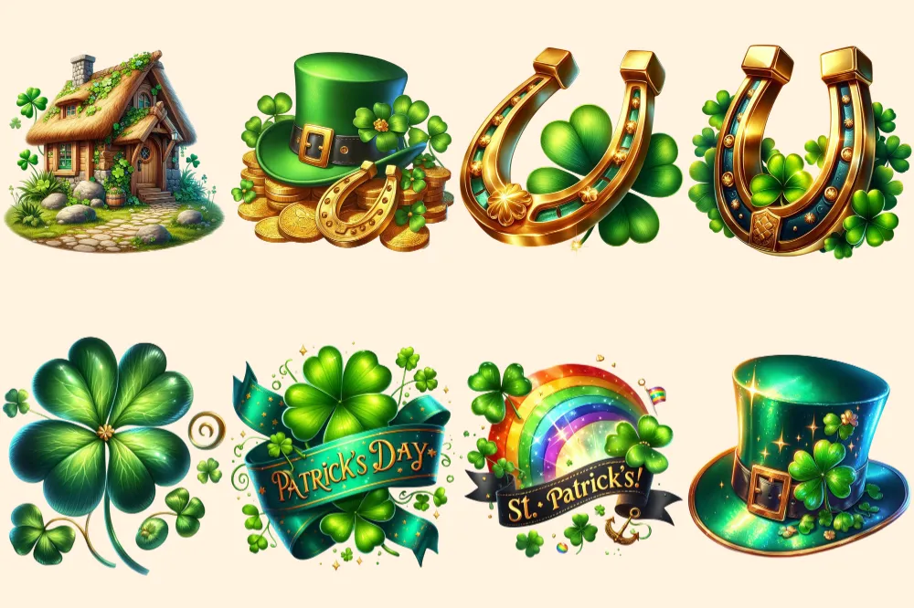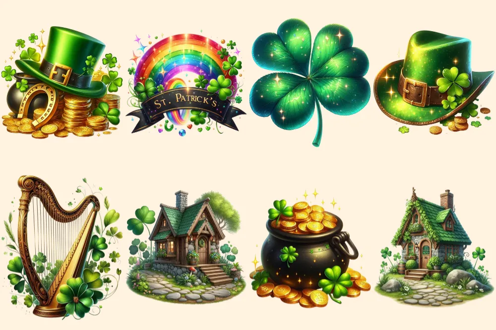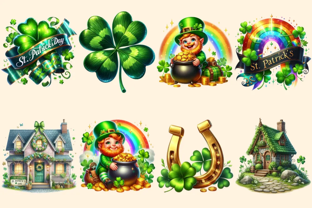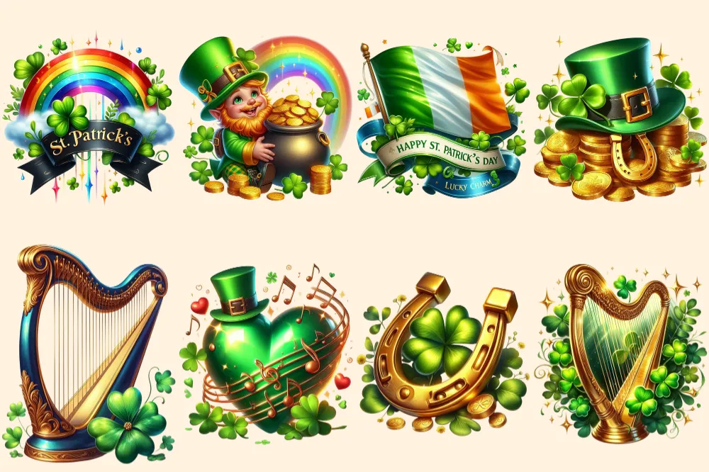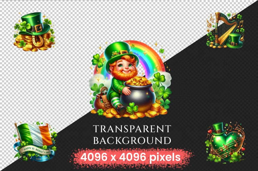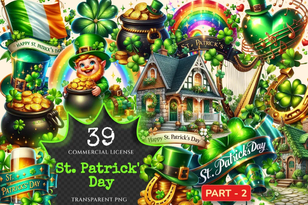 St. Patrick’s Day (P-2) PNG Clipart Collection – 39 PNG, Lucky leprechaun illustrations, Shamrock prints, Commercial use, Digital download