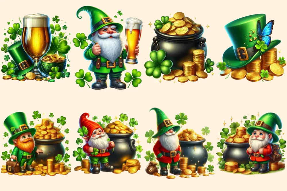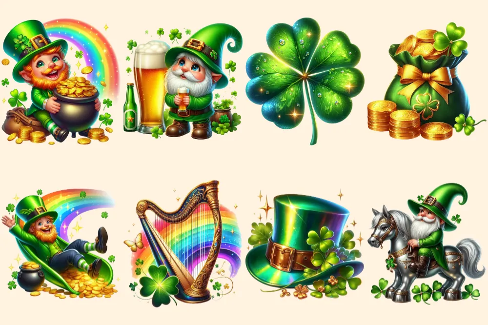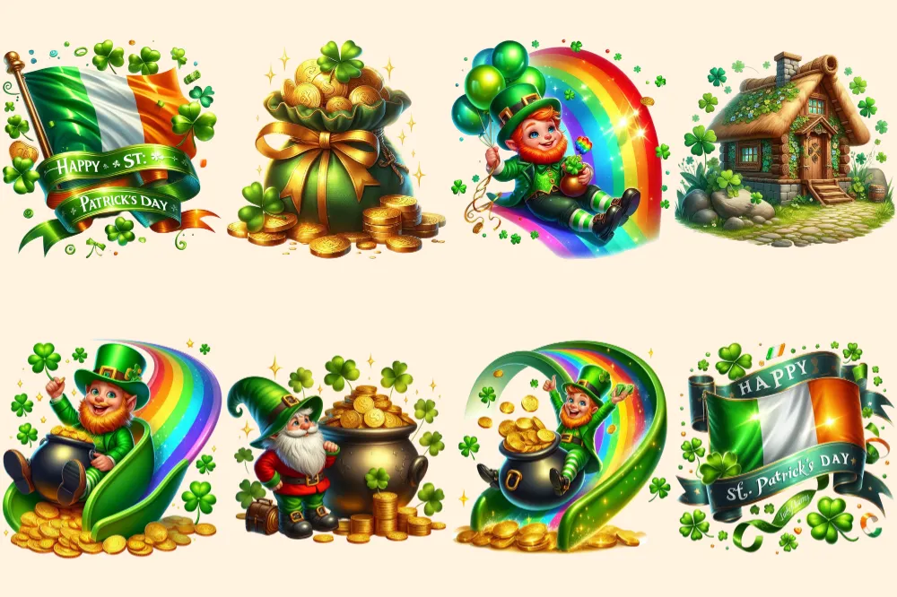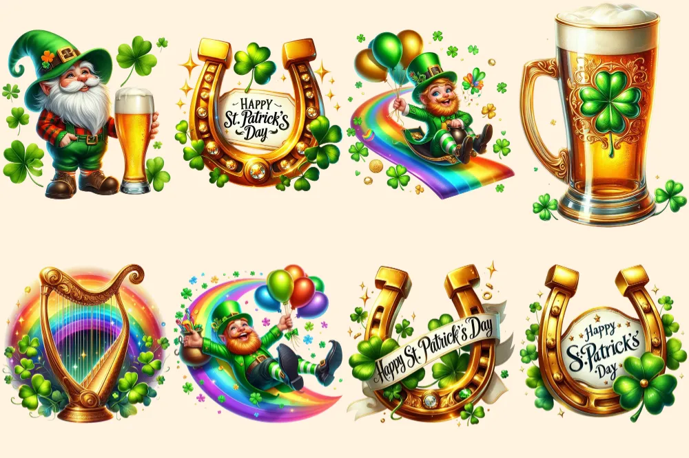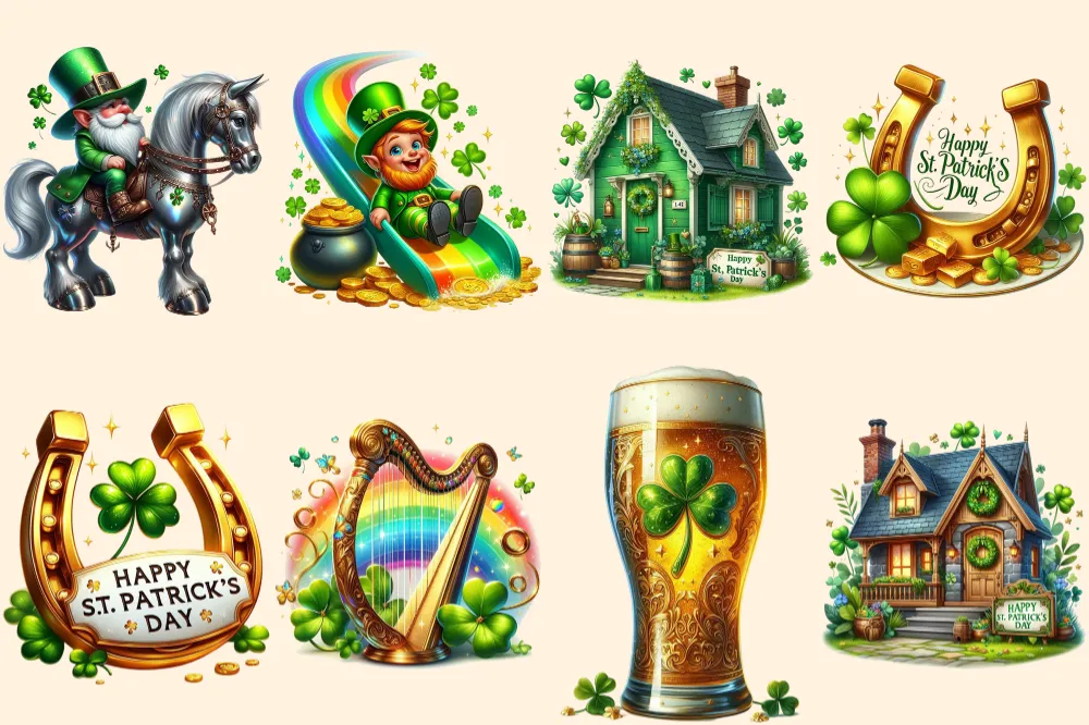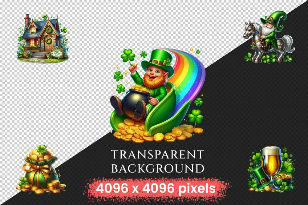 St. Patrick’s Day (P-2) PNG Clipart Collection – 39 PNG, Lucky leprechaun illustrations, Shamrock prints, Commercial use, Digital download