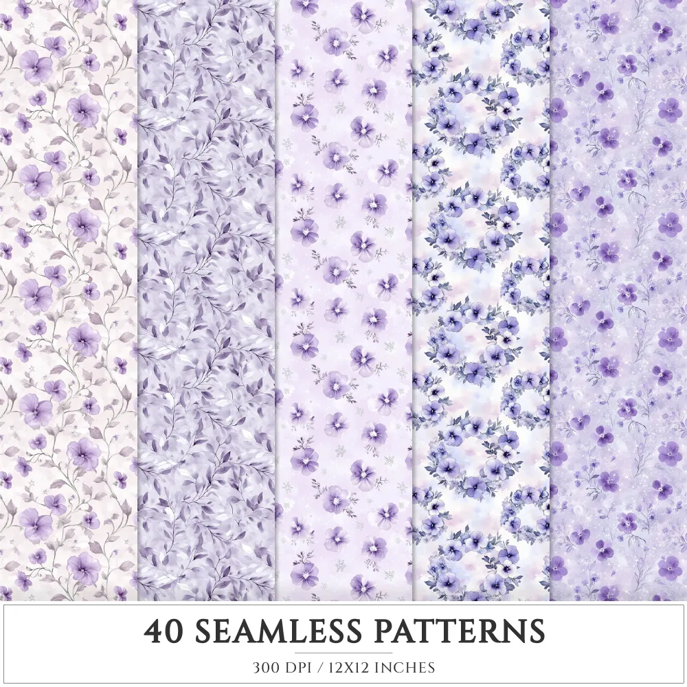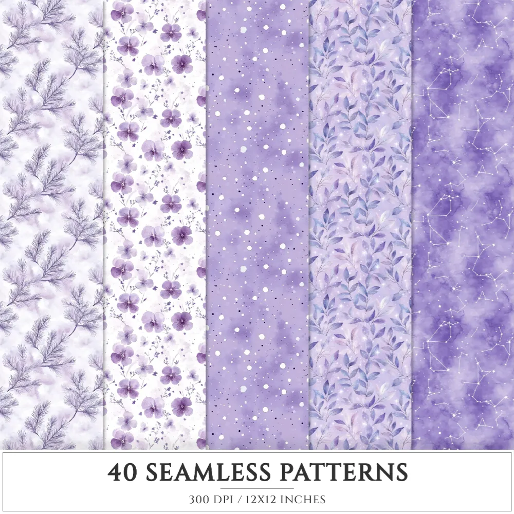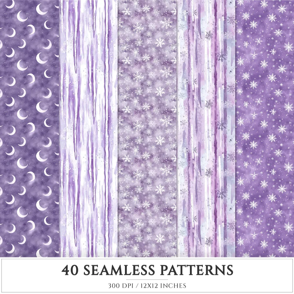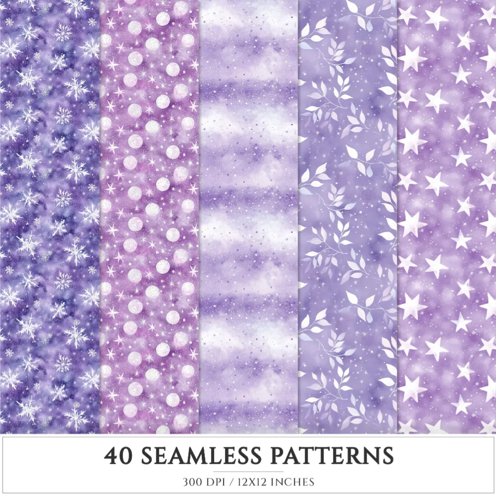 Starry Winter Seamless Patterns, Starry snowfall JPEG, Frosted pine pattern, Pansy, Snowflake repeating pattern, Digital scrapbook paper
