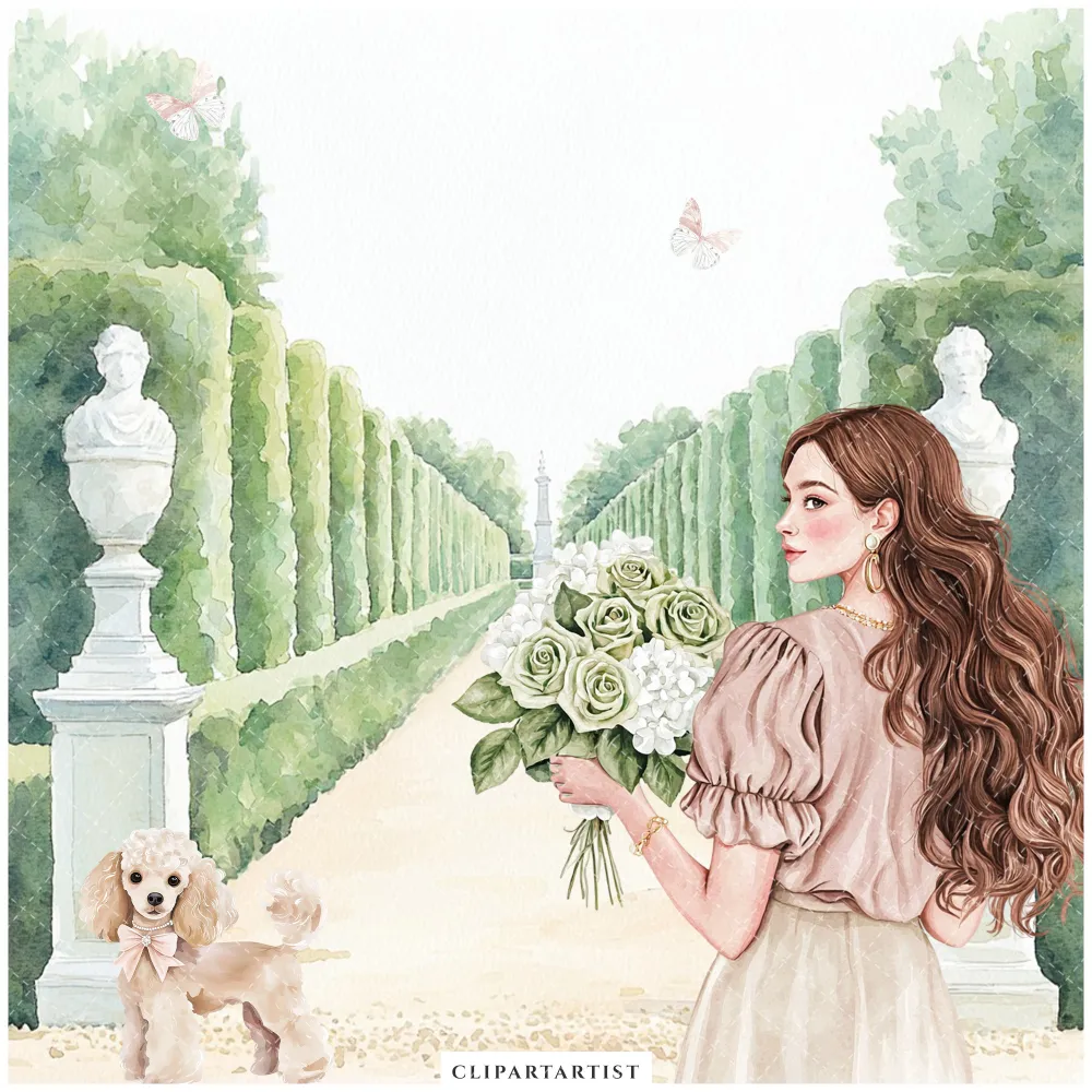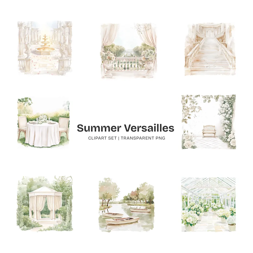 Summer Versailles Clipart Set – French Garden PNG Illustrations, Palace Fountain Hedges Graphics, Elegant Floral, Digital Download