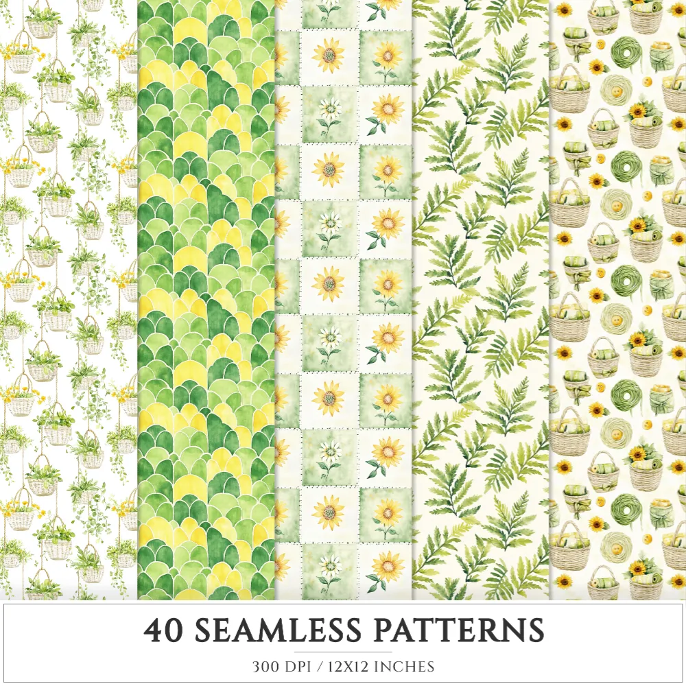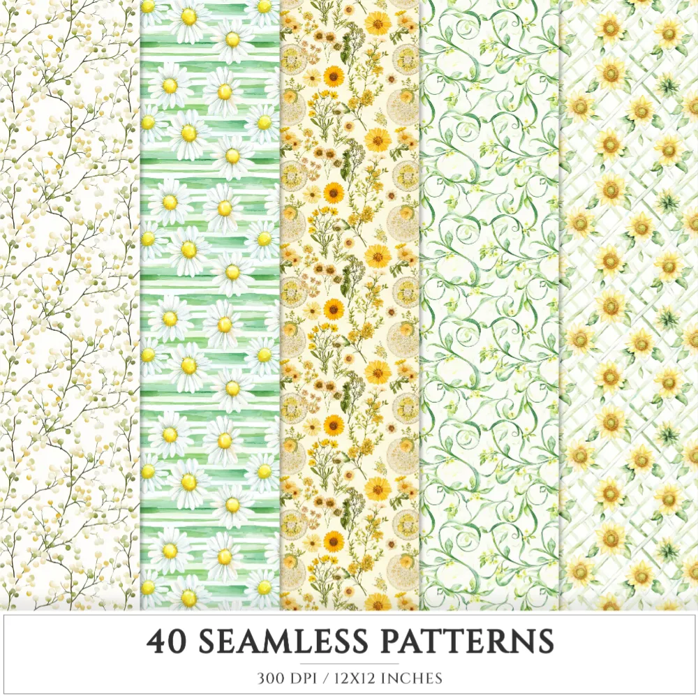 Sunny Days Seamless Patterns, Sunflower summer JPEG, Gingham pattern, Floral summer, Cozy summer repeating pattern, Digital scrapbook paper