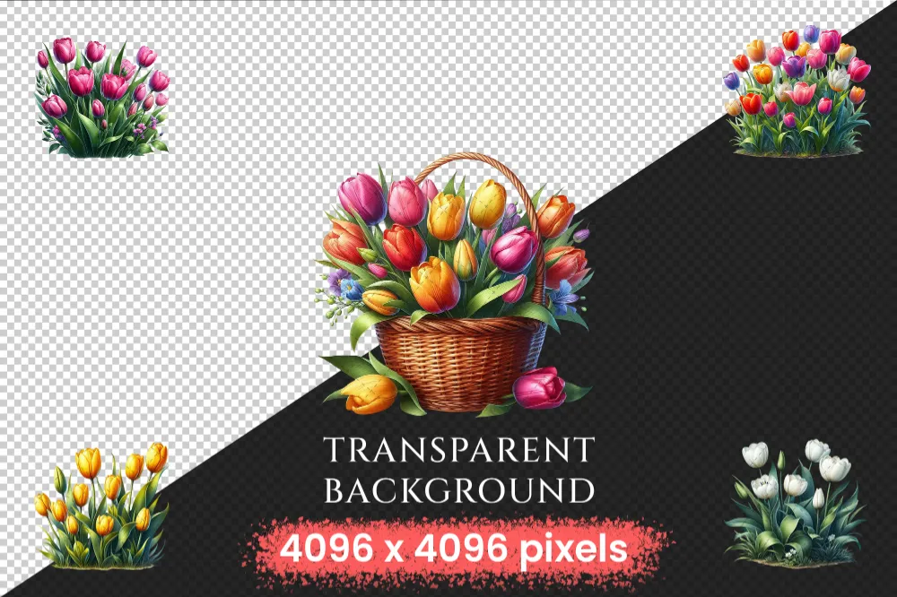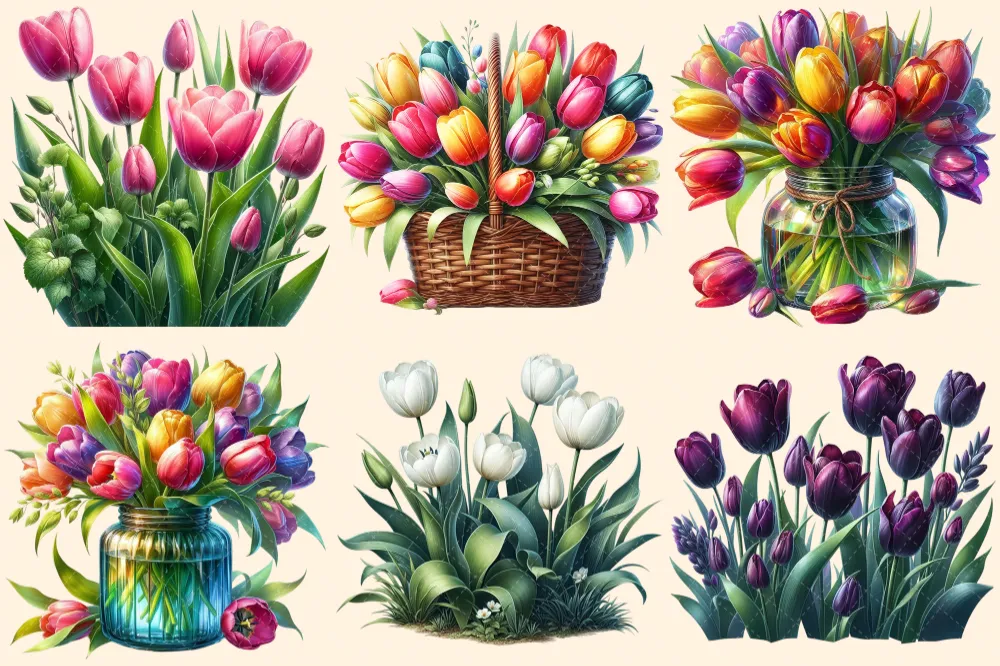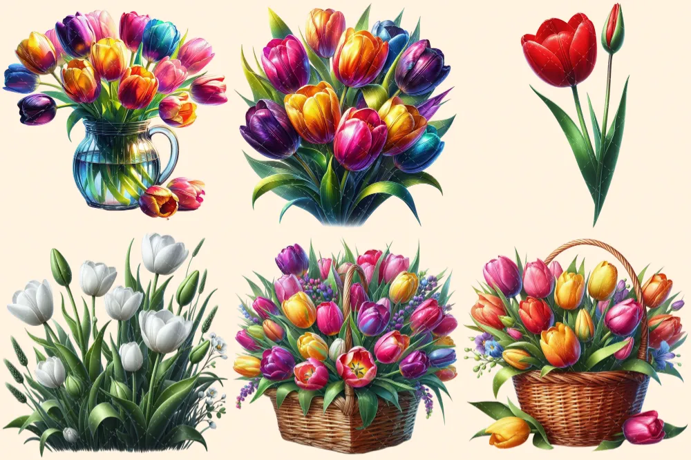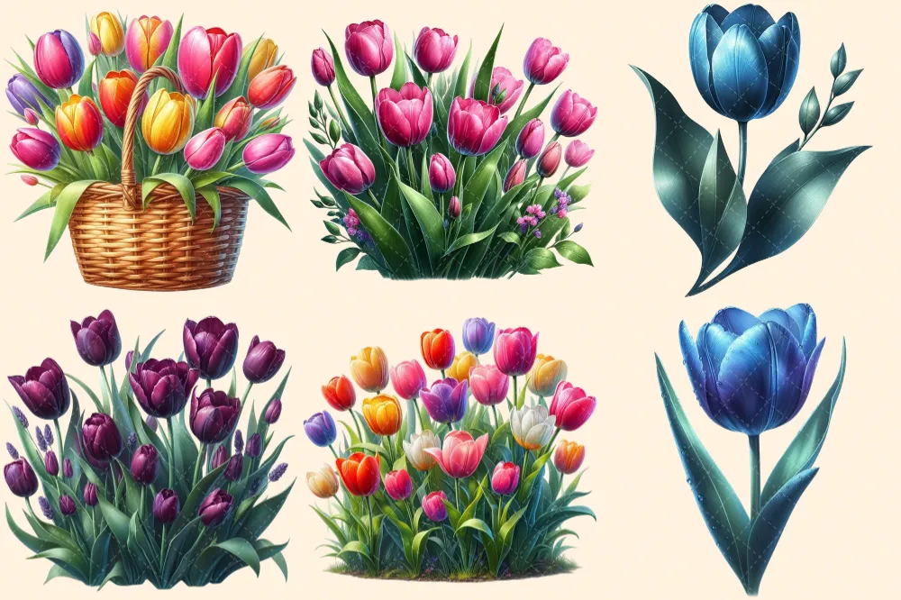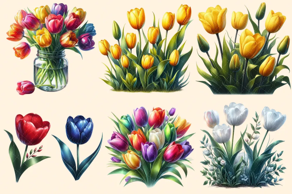 Tulips PNG Clipart Collection – 31 PNG, Vibrant spring blooms illustrations, Bold tulip printables, Commercial use, Digital download