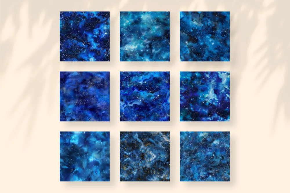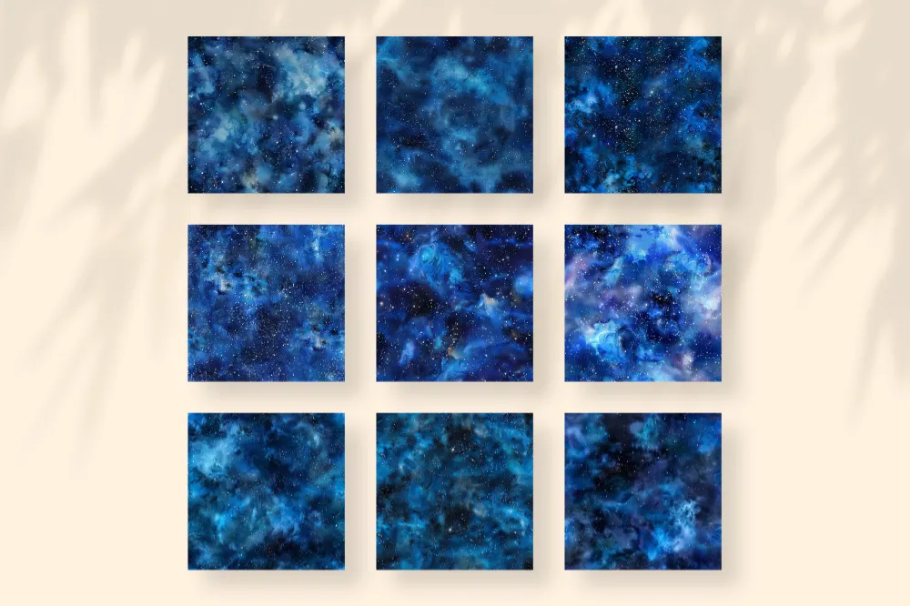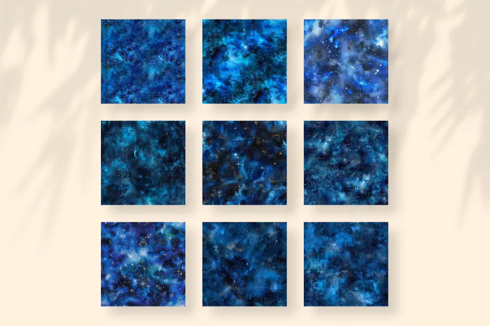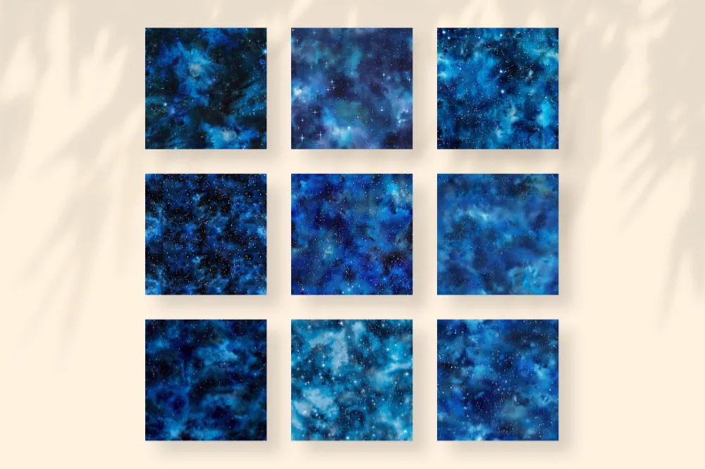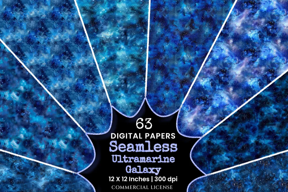 Ultramarine Galaxy Seamless Digital Paper – 63 Scrapbook patterns, Blue night sky backgrounds, Space foil, Commercial use, Digital download