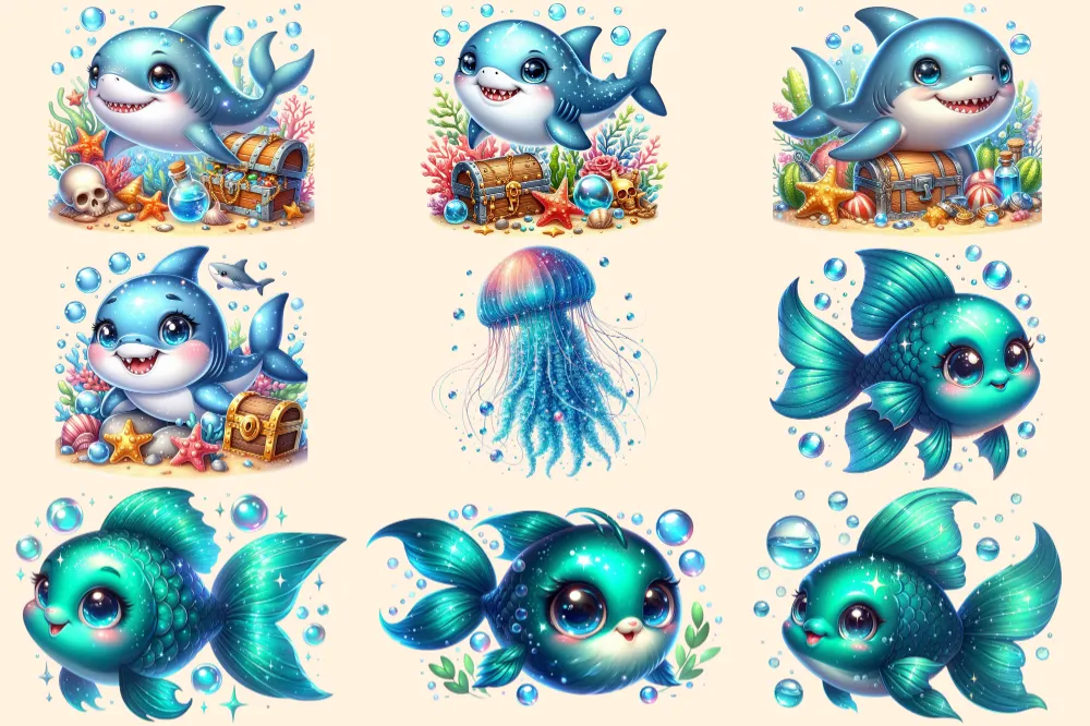 Underwater Animals PNG Clipart Collection – 45 PNG, Vibrant sea life graphics, Ocean wildlife art, Commercial use, Digital download