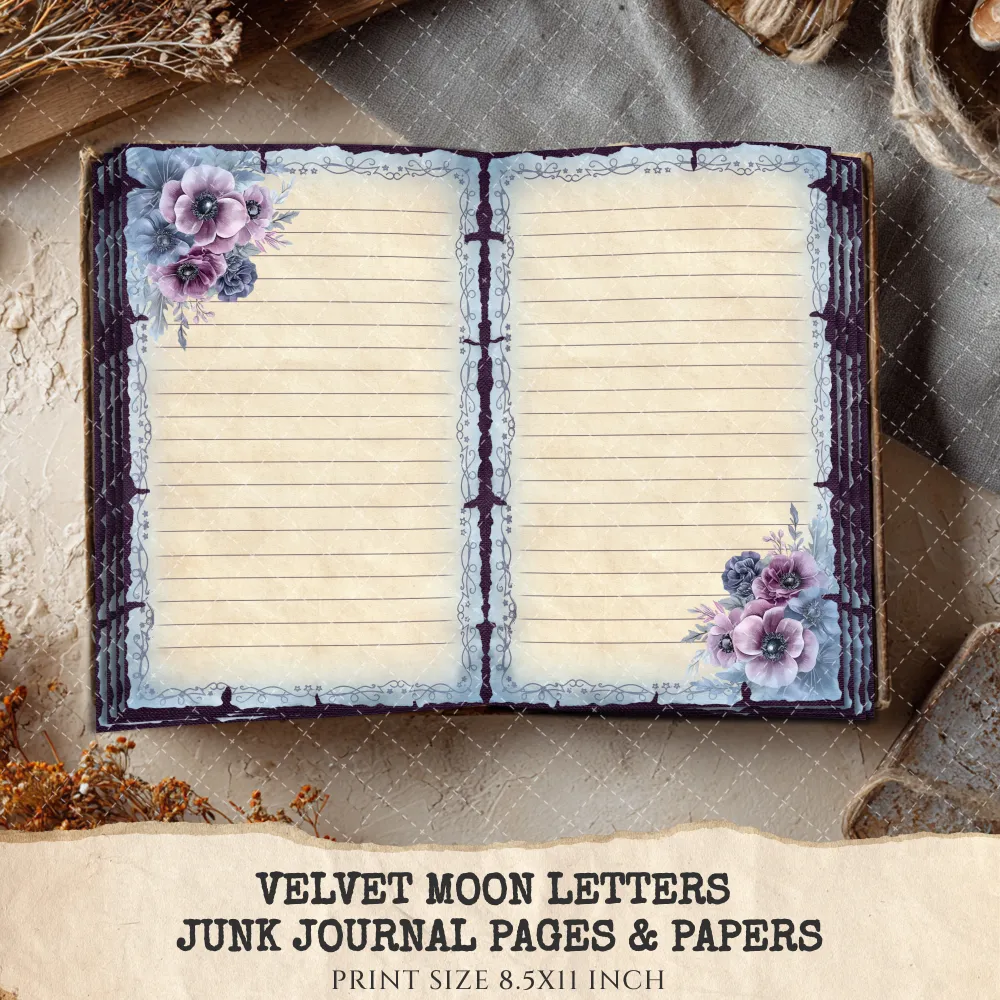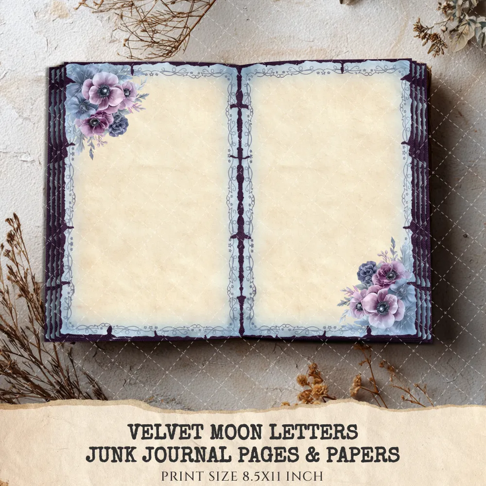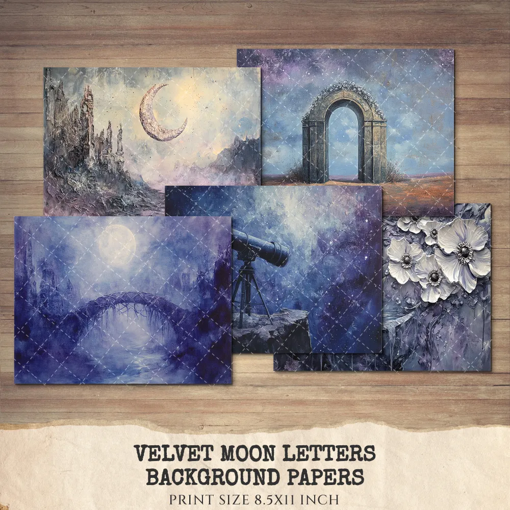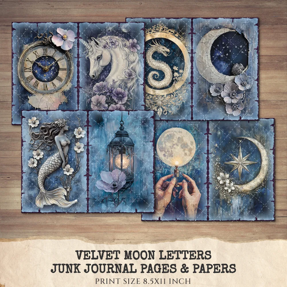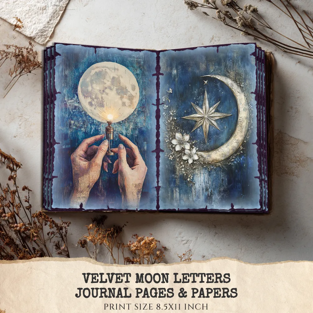 Velvet Moon Letters Junk Journal Pages & Papers – Astrology, Celestial Printable, Moonlight Scrapbook, Mystical, Magical, Digital Download