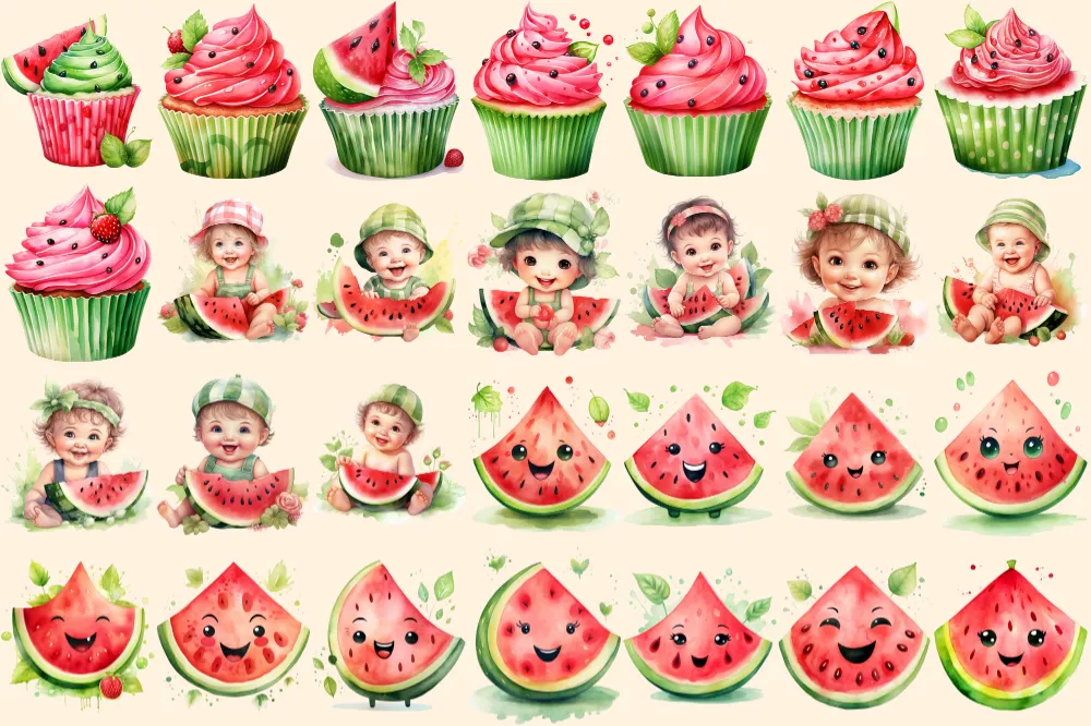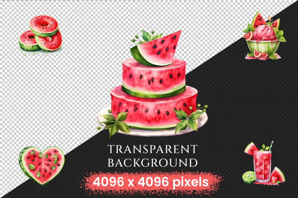 Watermelon Watercolor Clipart Bundle – 190+ transparent PNG, Refreshing treat illustrations, Summer images, Commercial use, Digital download
