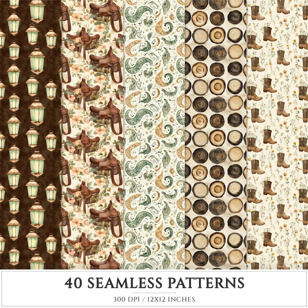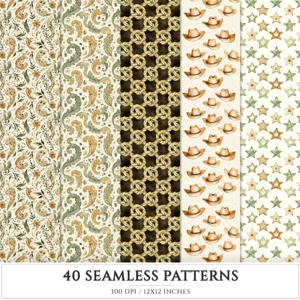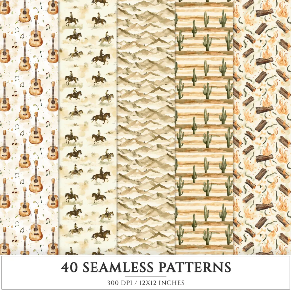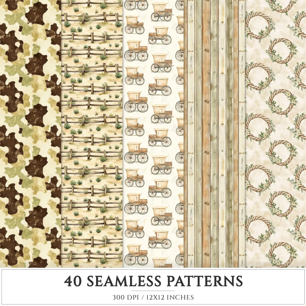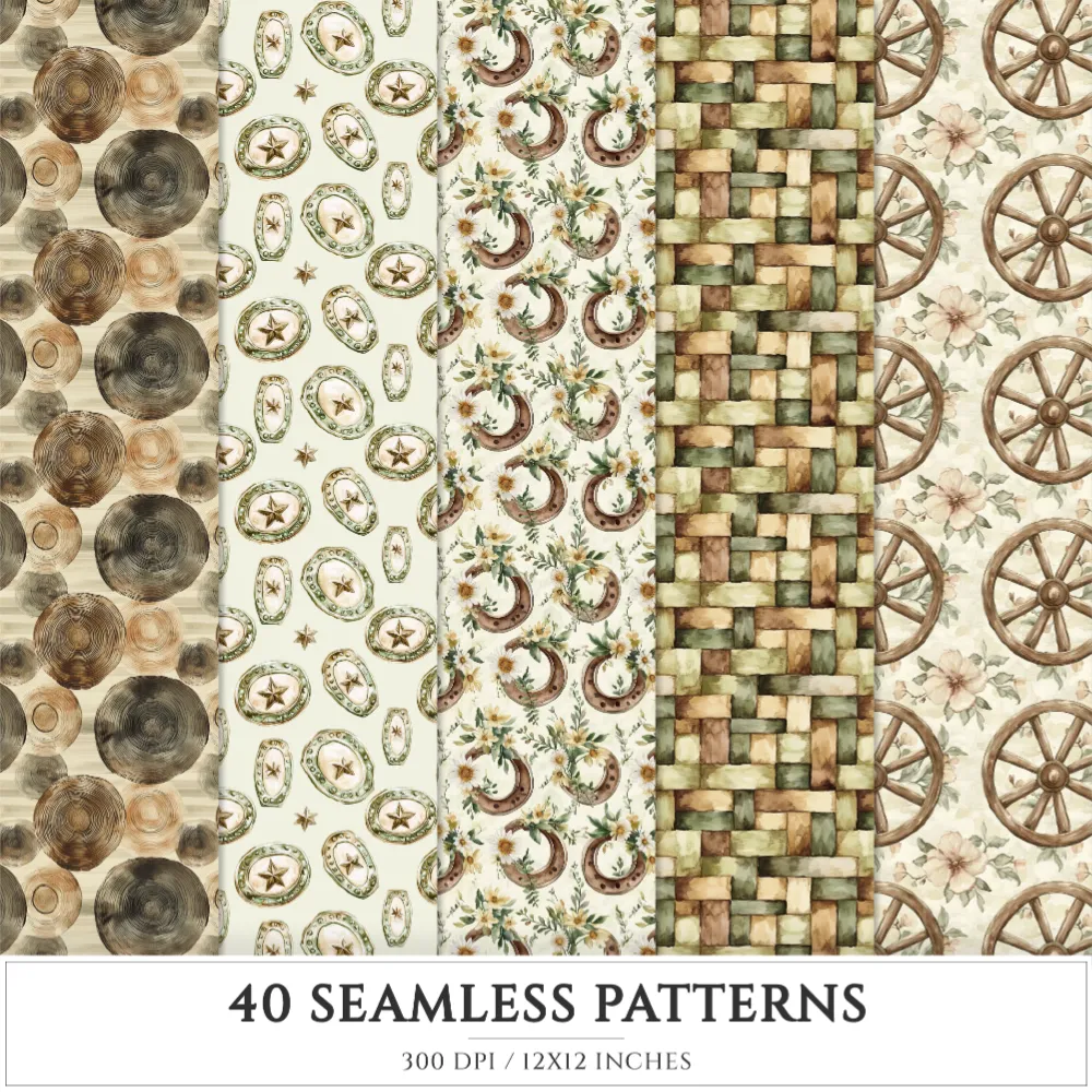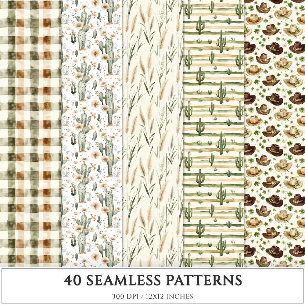 Western Cottage Seamless Patterns, Texas ranch JPEG, Horseshoes pattern, Hats, Cactus and desert repeating pattern, Digital scrapbook paper