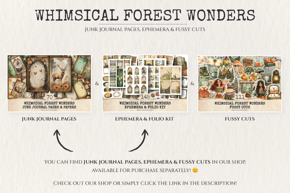 1. Whimsical Forest Wonders Junk Journal Ephemera & Folio Kit: