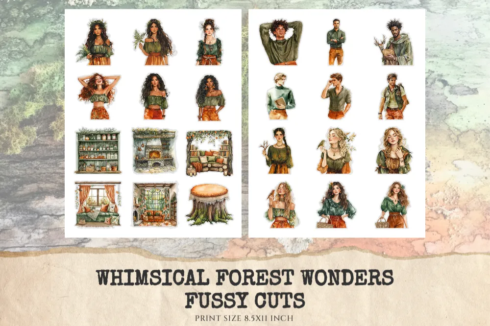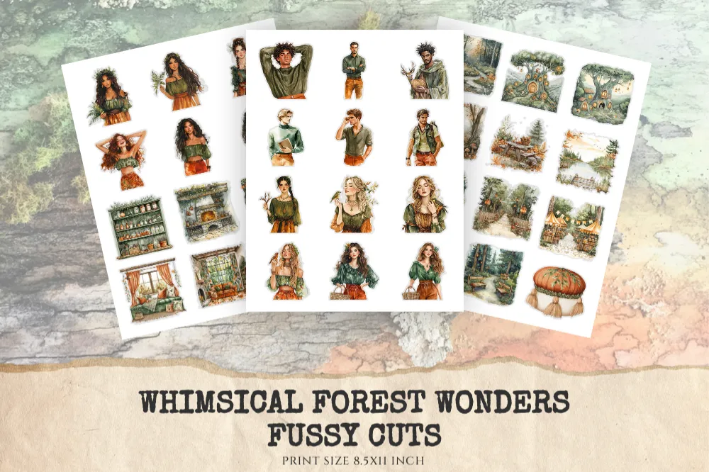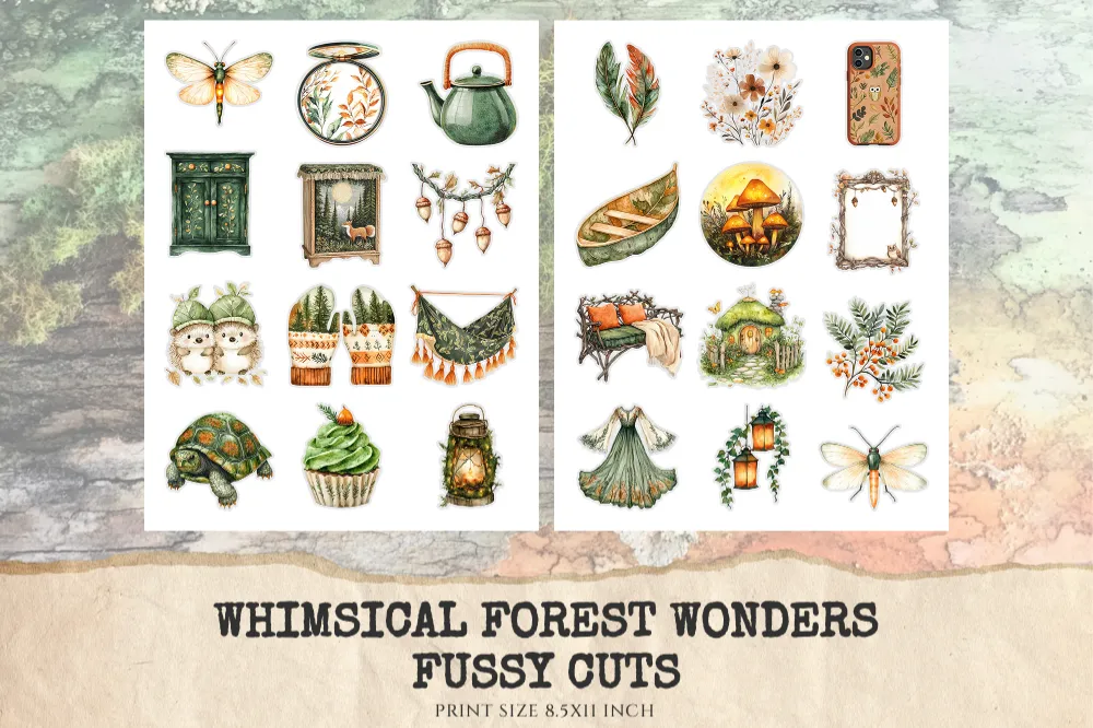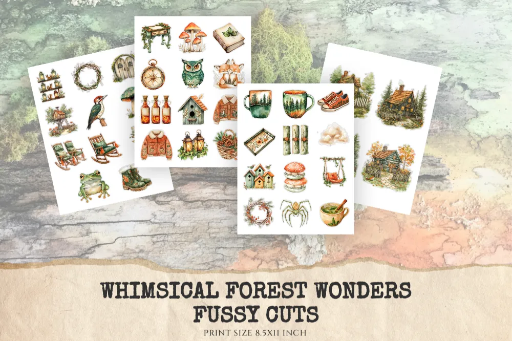 Whimsical Forest Wonders Fussy Cuts – Woodland, Forest, Animal, Collage sheets, Digital Sticker, Ephemera, Junk Journal Kit,Digital download