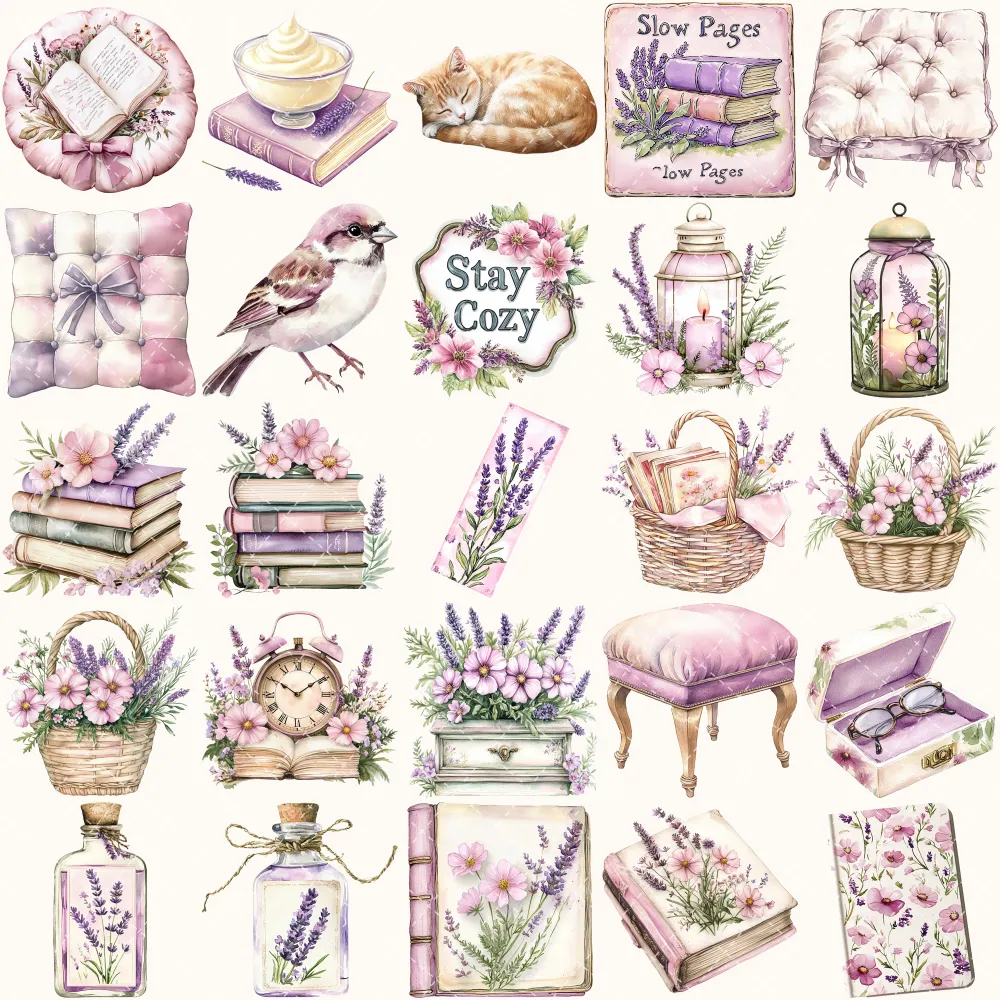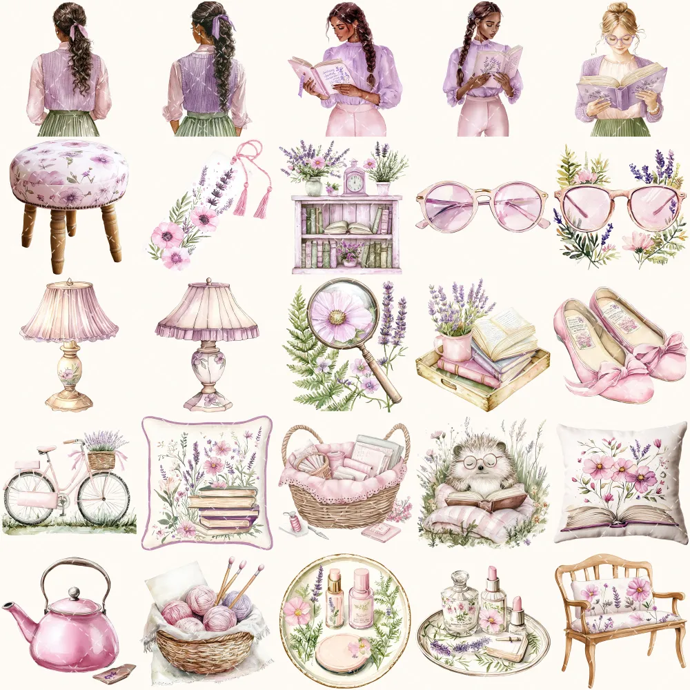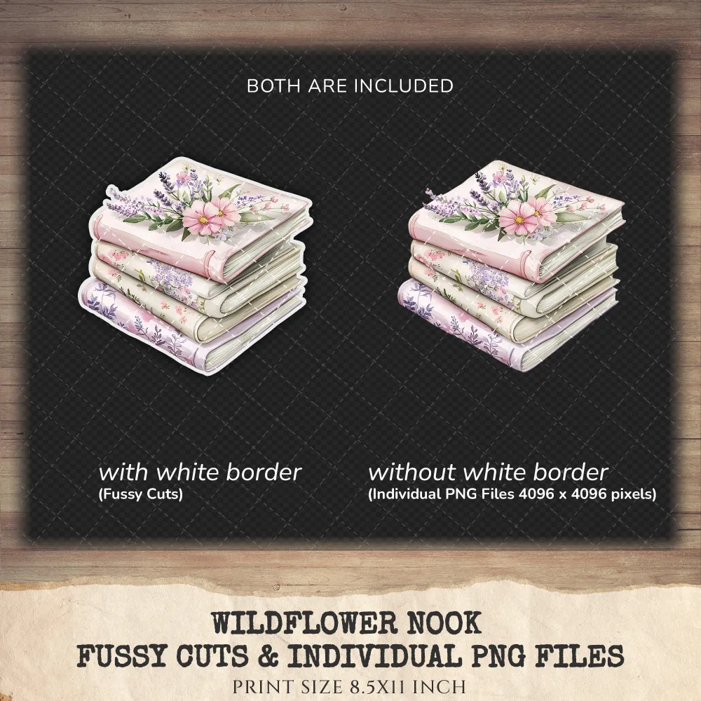 Wildflower Nook Clipart Set – Cozy Reading Illustrations, Books and Candles Graphics, Wildflower PNG, Bookworm, Cottagecore,Digital download