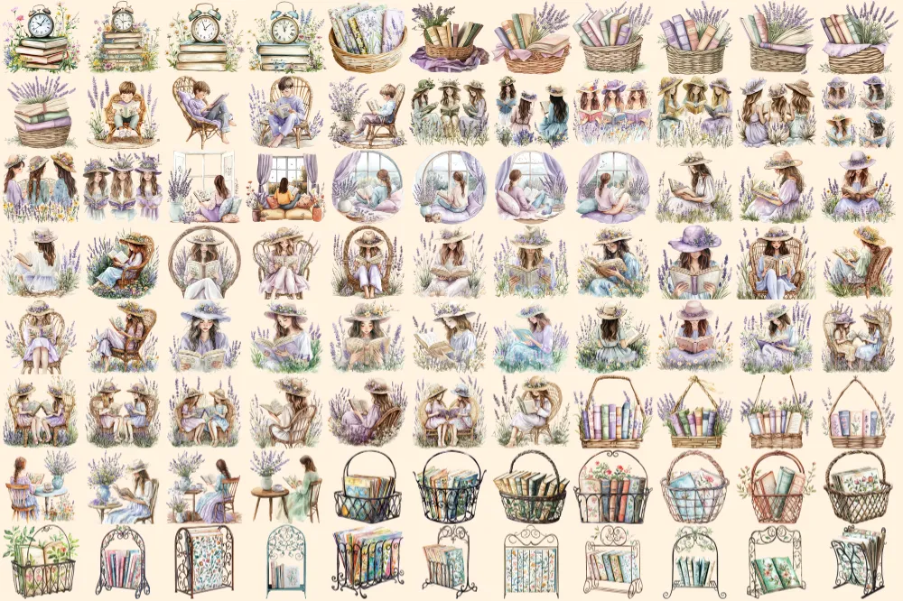 Wildflower Novel Watercolor Clipart Bundle – 595+ transparent PNG, Rustic book graphics, Storybook images, Commercial use, Digital download