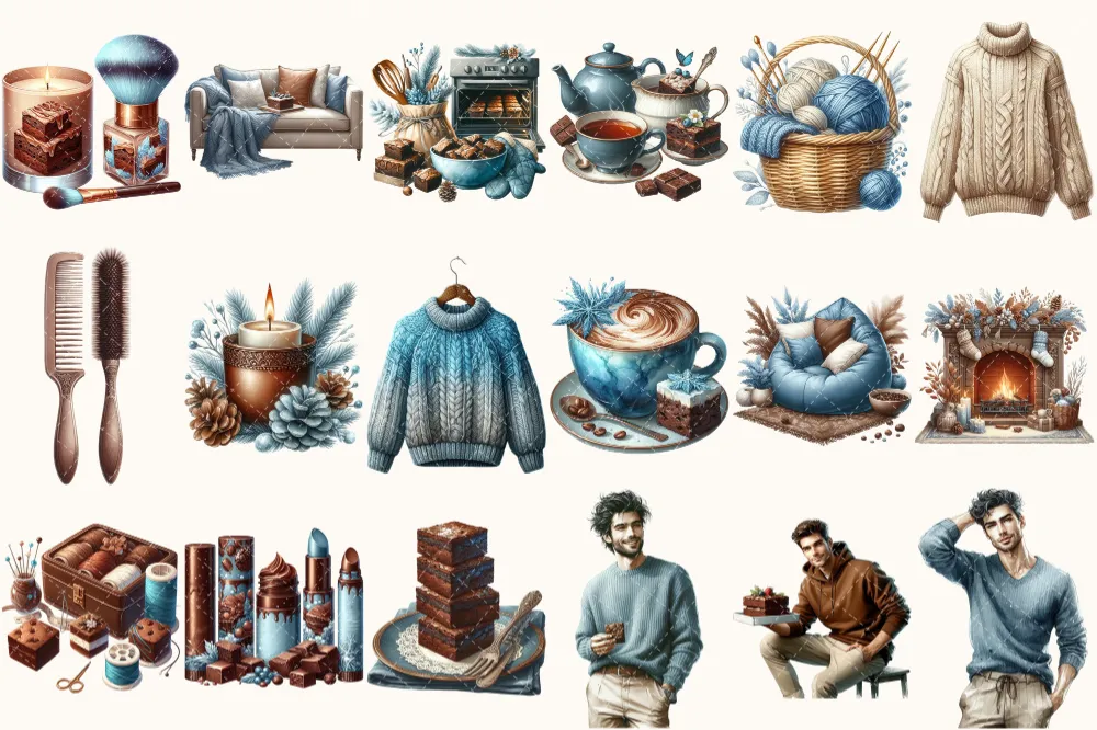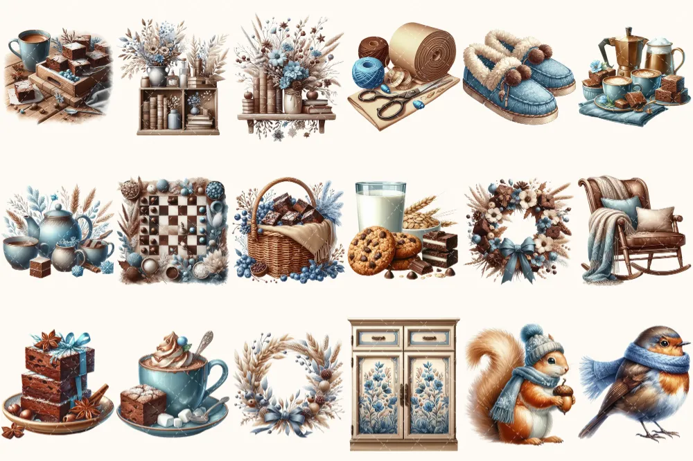 Winter Brownie Haven Clipart Mini Set – 125+ transparent PNG, Rustic winter graphics, Brownie winter art, Commercial use, Digital download