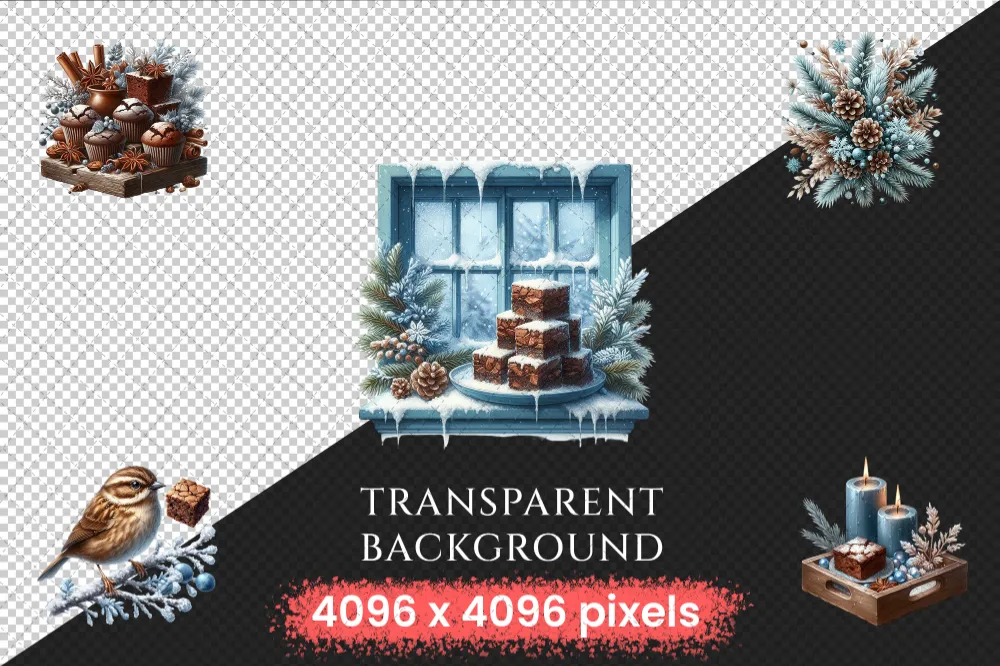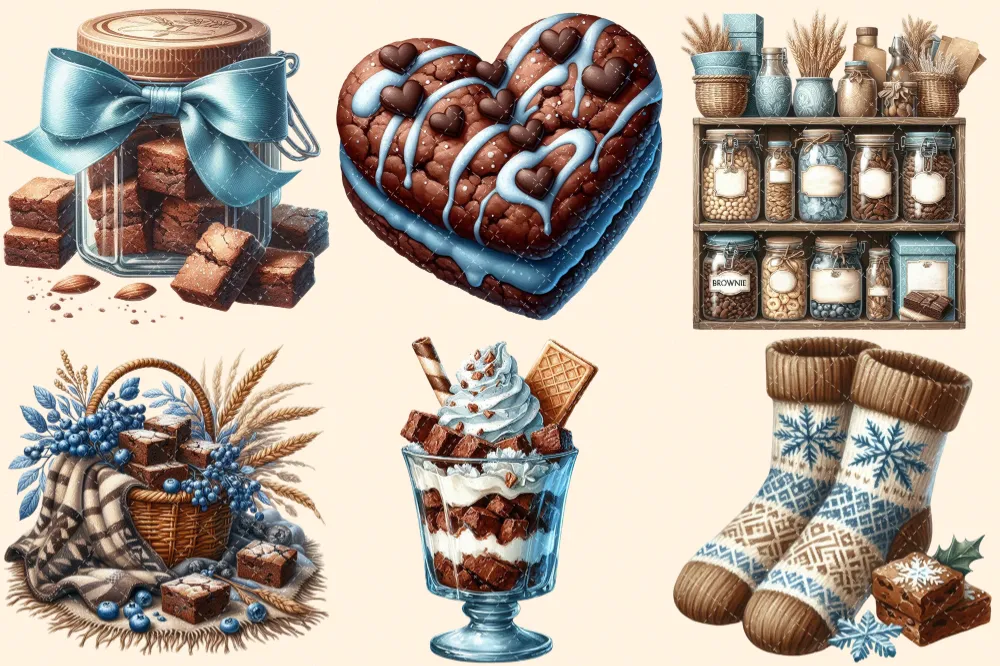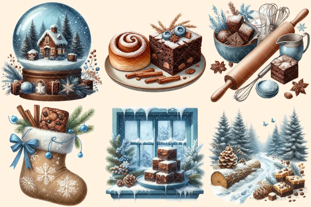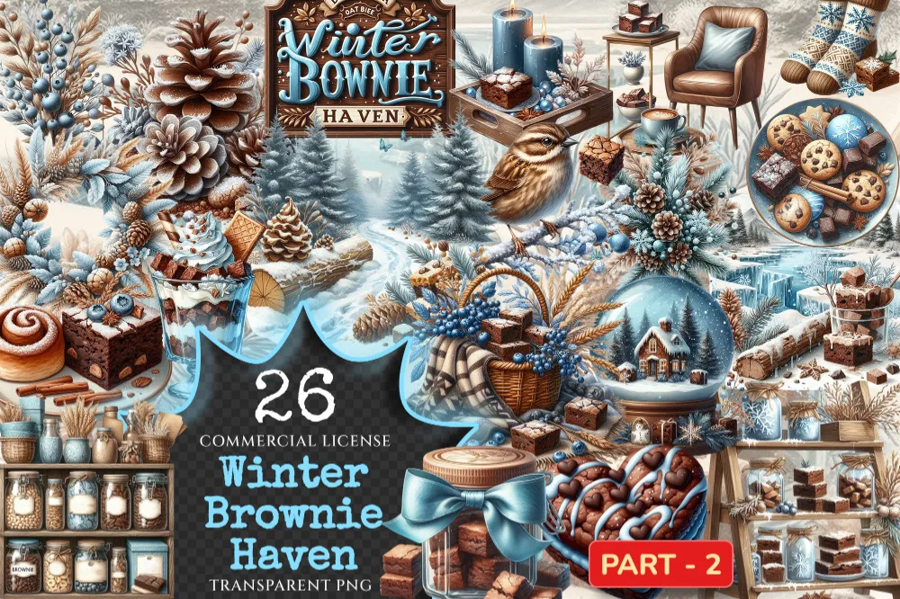 Winter Brownie Haven (P-2) PNG Clipart Collection – 26 PNG, Brownie winter illustrations, Rustic printables, Commercial use, Digital download