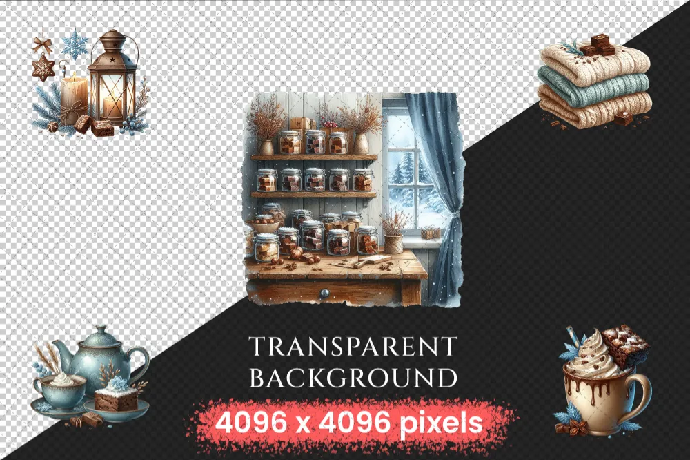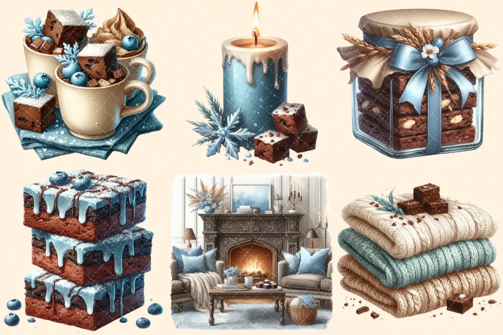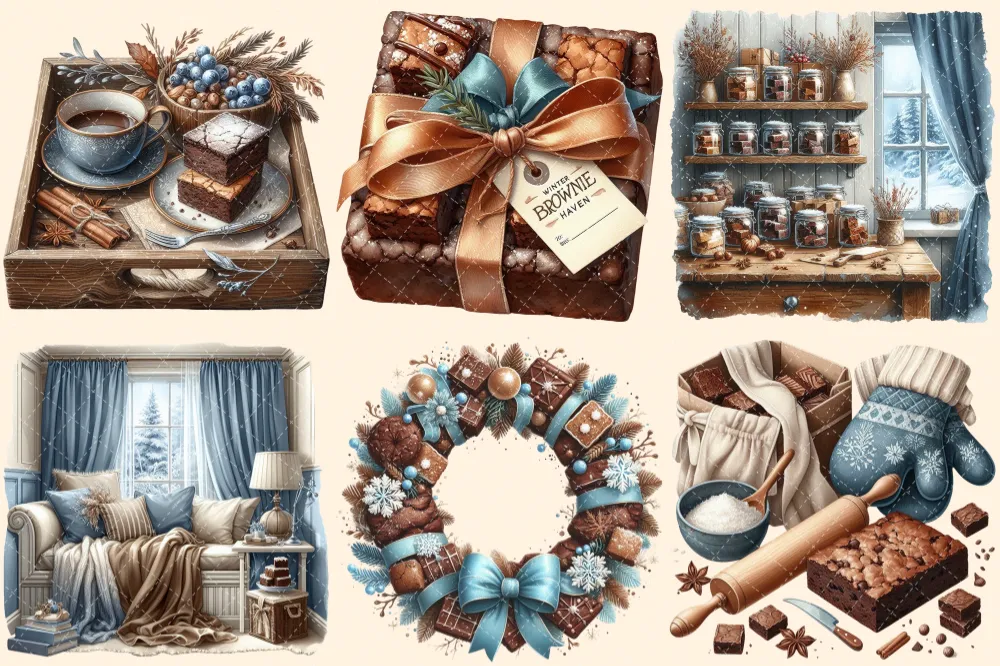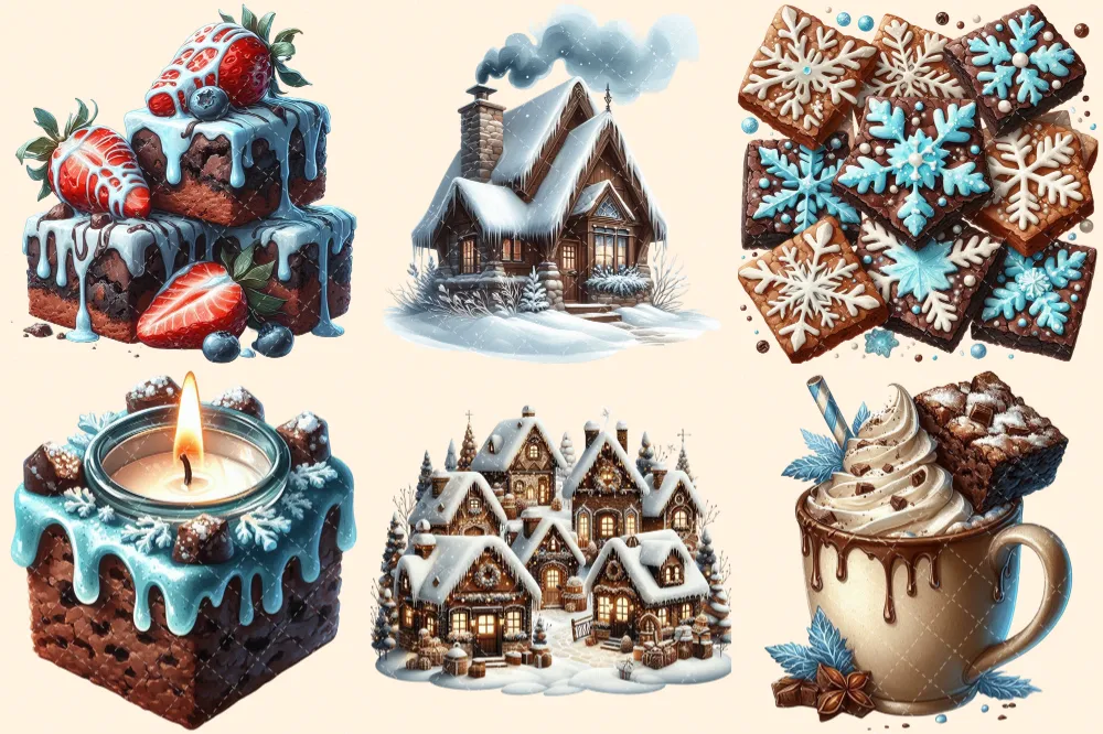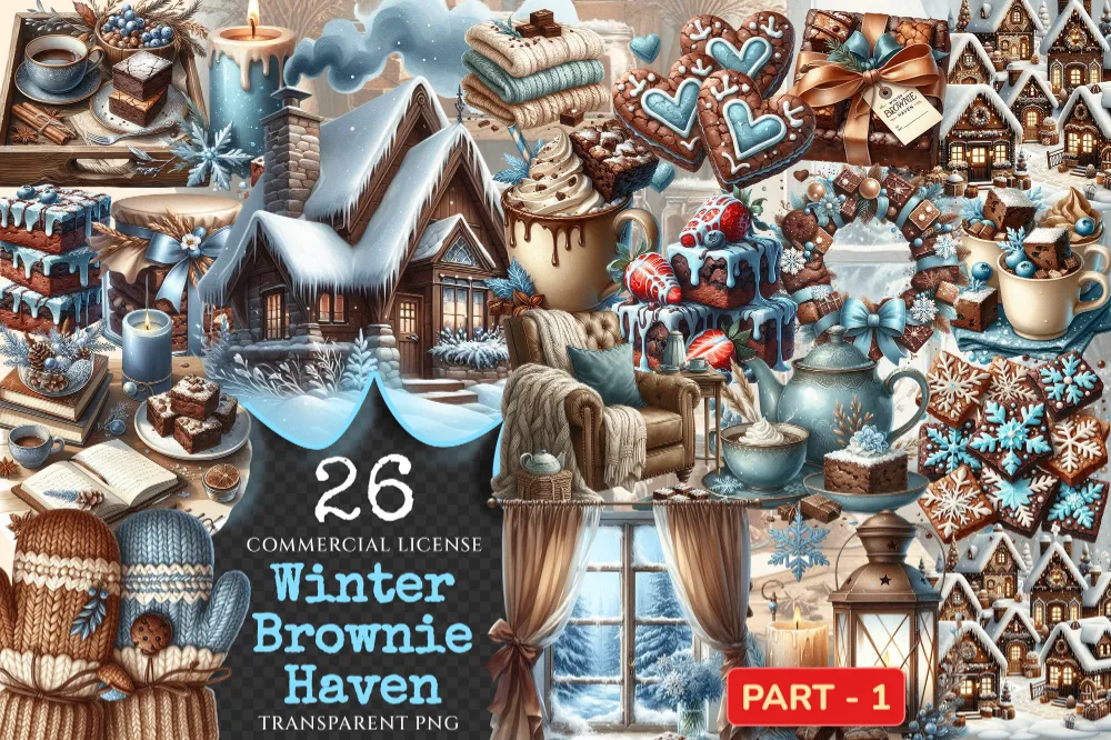 Winter Brownie Haven PNG Clipart Collection – 26 PNG, Brownie winter illustrations, Rustic printables, Commercial use, Digital download