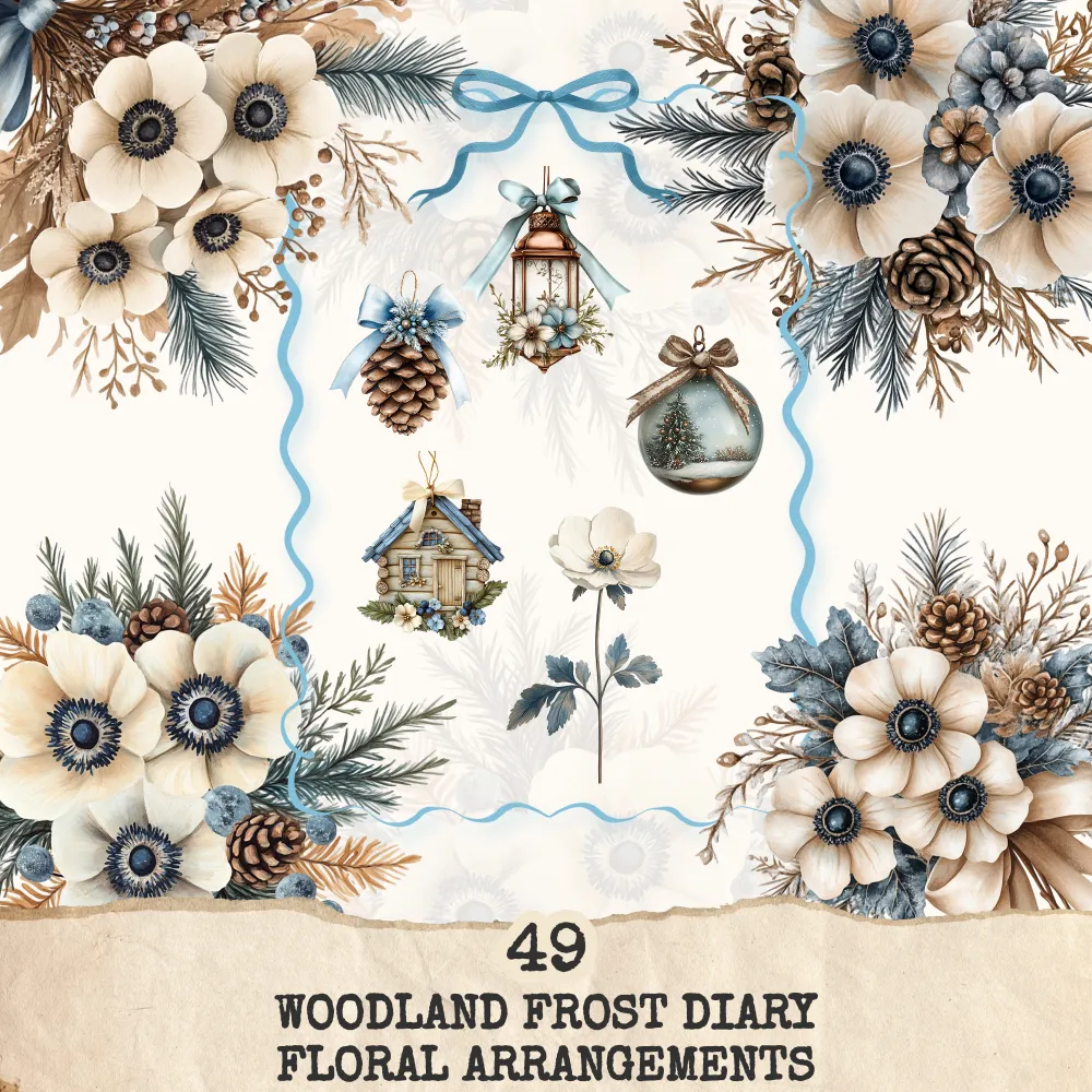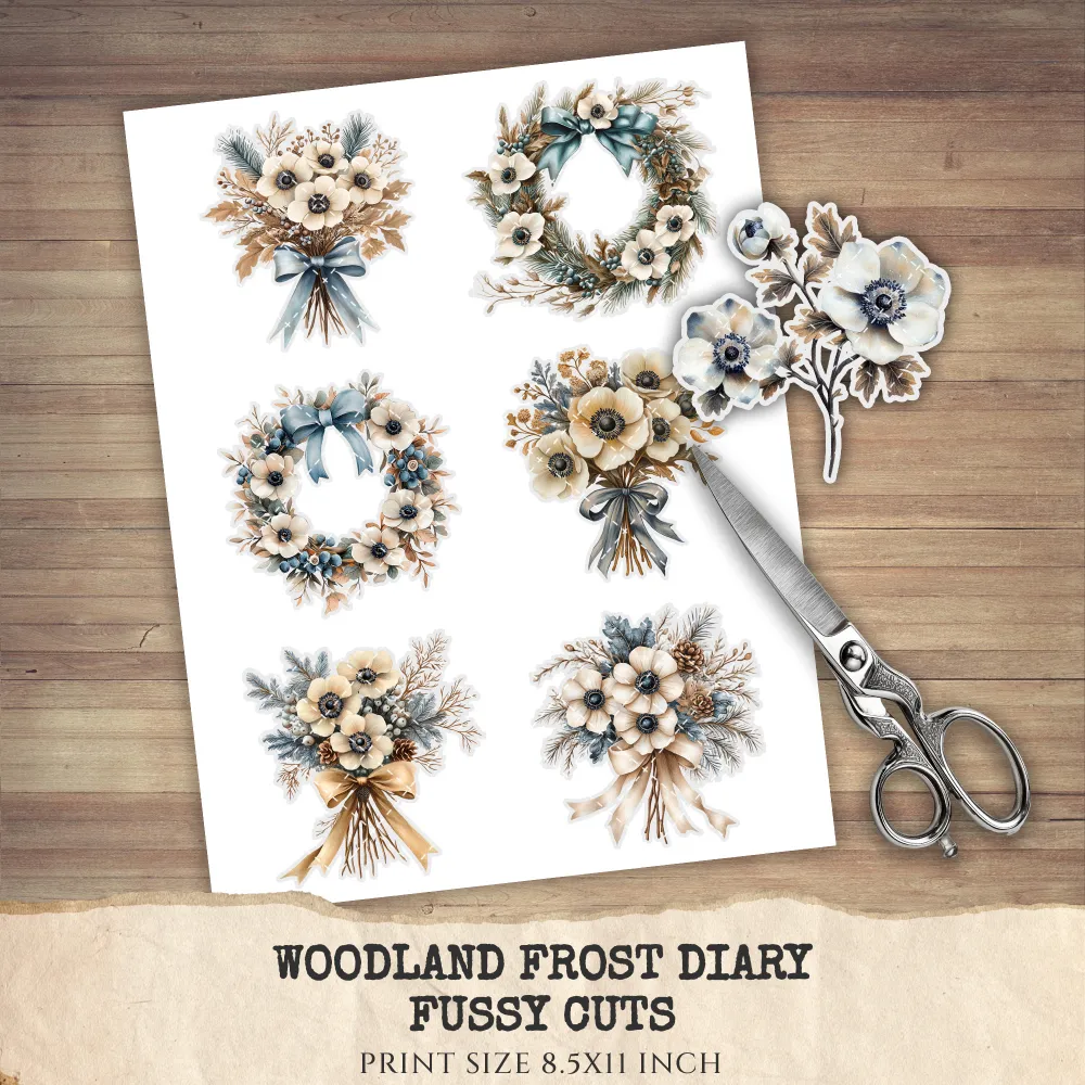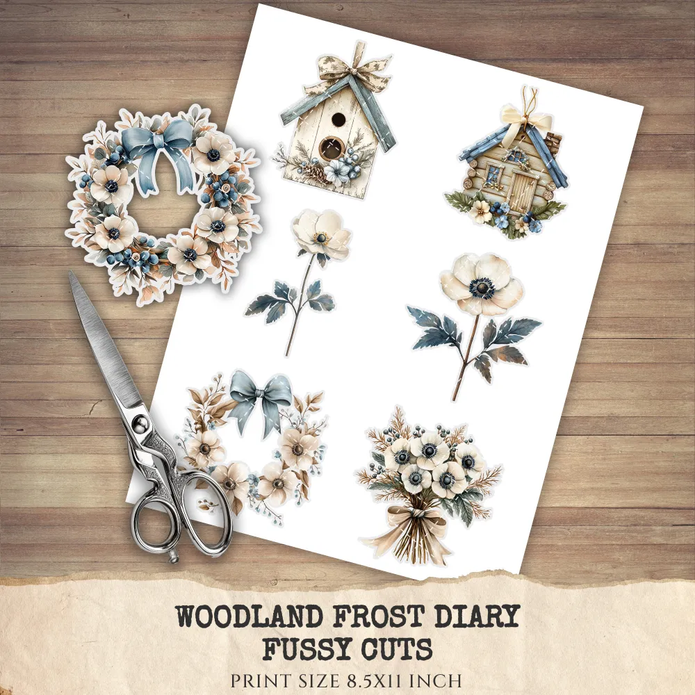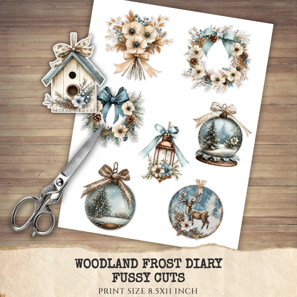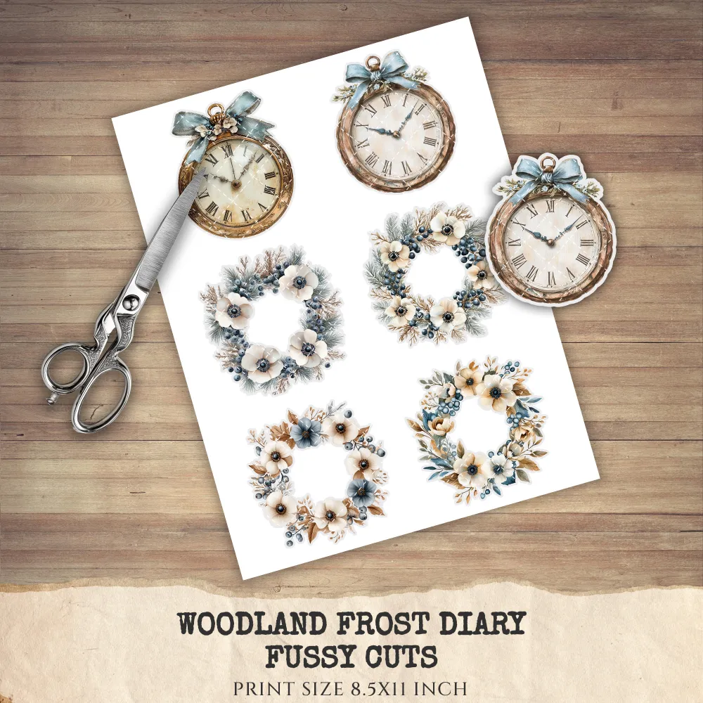 3. Woodland Frost Diary Clipart Set: