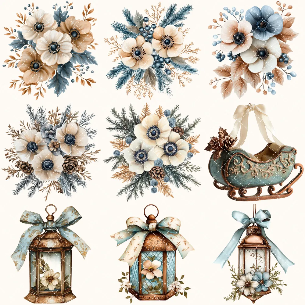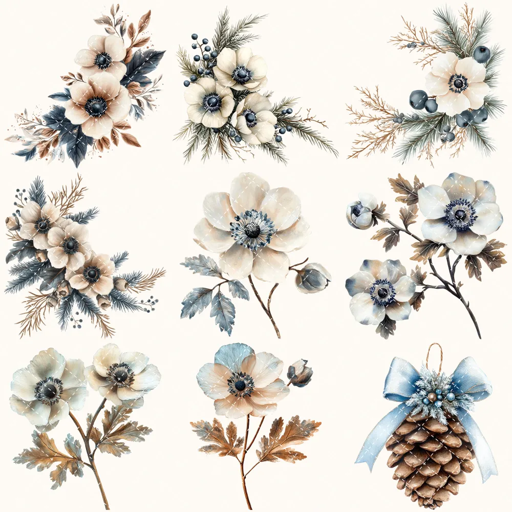 Woodland Frost Diary Floral Arrangements – Anemone Flowers, Botanical, Winter Florals, Bouquet, Floral Wreath, Greenery Art,Digital Download