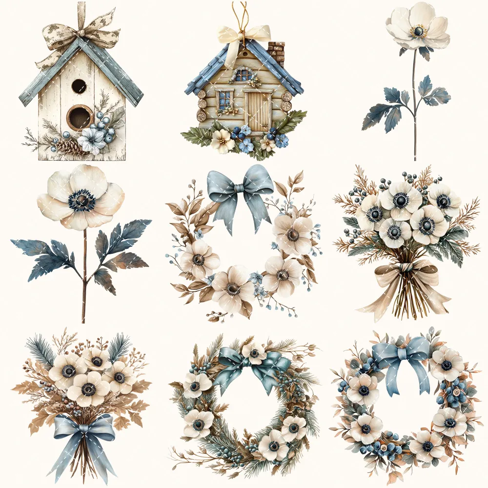 Printed materials come to life with our watercolor clipart. Craft beautiful greeting cards, wedding invitations, stationery, and packaging designs that exude elegance and sophistication. These digital assets provide endless possibilities for personalization and creativity.