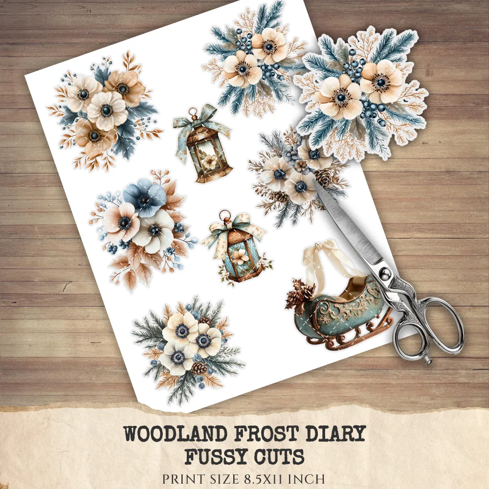 2. Woodland Frost Diary Junk Journal Pages & Papers: